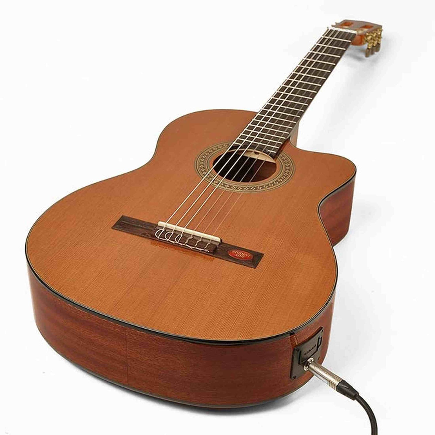 De Salvador Cortez CC-10CE is een toegankelijke elektro-akoestische klassieke gitaar, ideaal voor beginnende spelers die ook willen optreden of opnemen. Het massieve ogende ceder bovenblad geeft de gitaar een warme, ronde klank, terwijl de sapele zij- en achterkant zorgen voor een heldere, muzikale ondertoon. Dankzij de cutaway heb je gemakkelijk toegang tot de hogere frets, wat deze gitaar veelzijdiger maakt in gebruik.