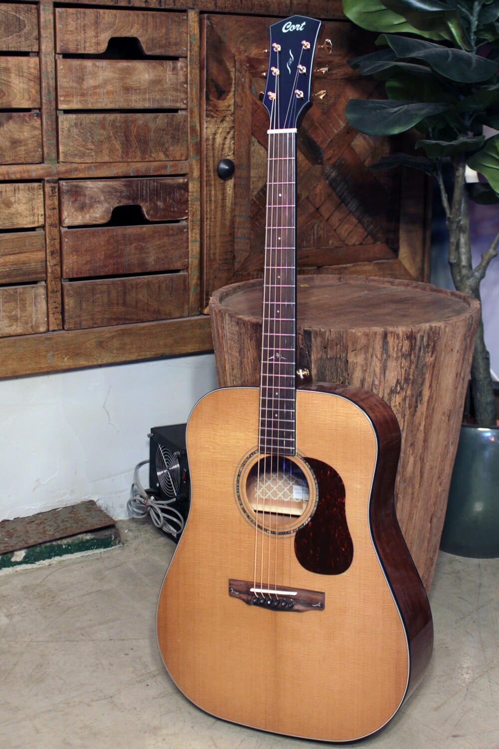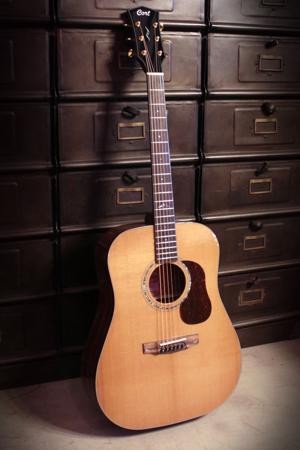 Deze volledig massieve gitaar is gebouwd met oog voor detail: een comfortabele C-profiel hals met walnootversteviging, Macassar ebbenhouten toets en brug, en luxe afwerkingen zoals abalone inlays en een tortoise slagplaat. Geen elektronica – puur akoestisch, puur geluid. De hoogglans UV-lak beschermt zonder de toon te verstikken, en met de meegeleverde Cort Premium gigbag neem je de Gold-D6 veilig overal mee naartoe.