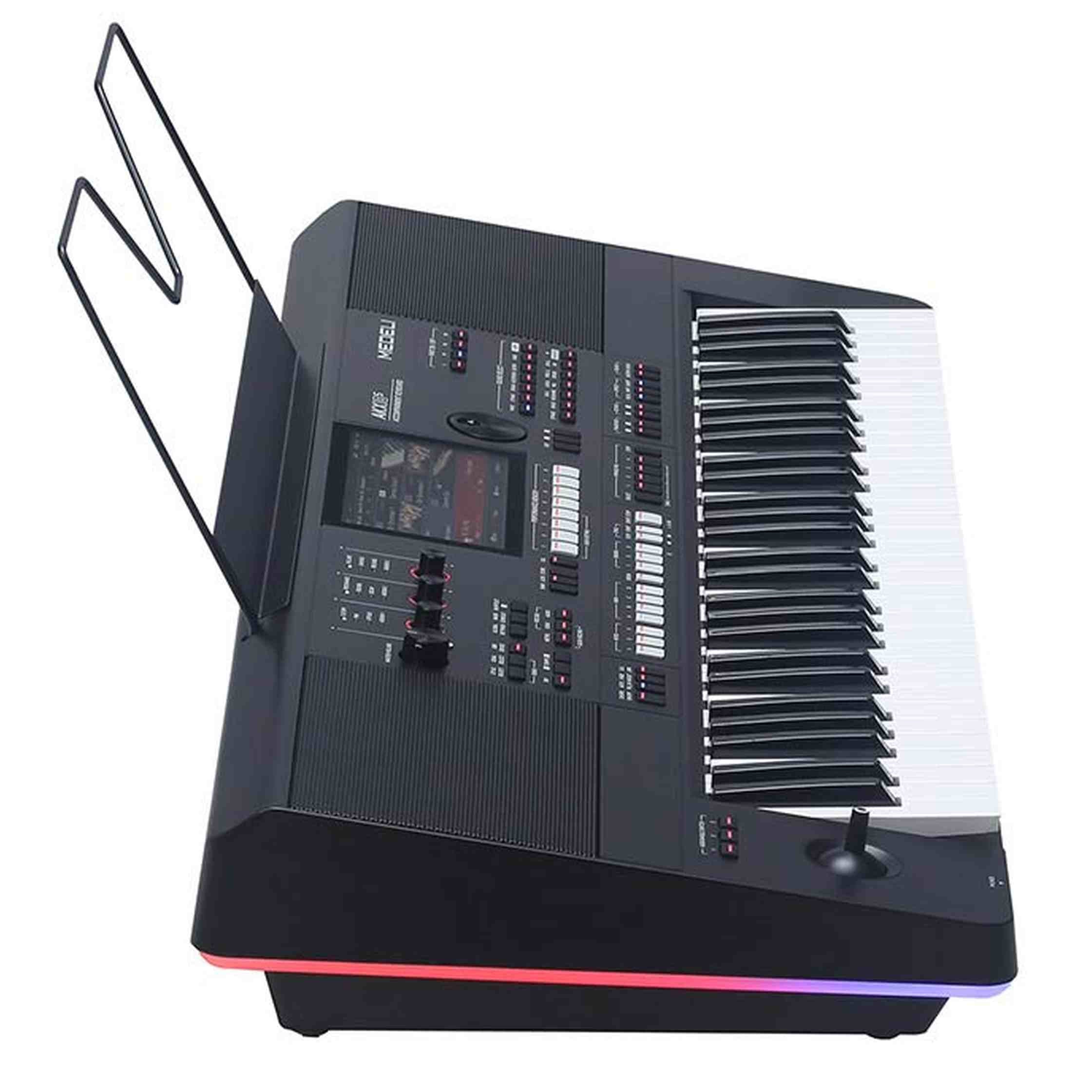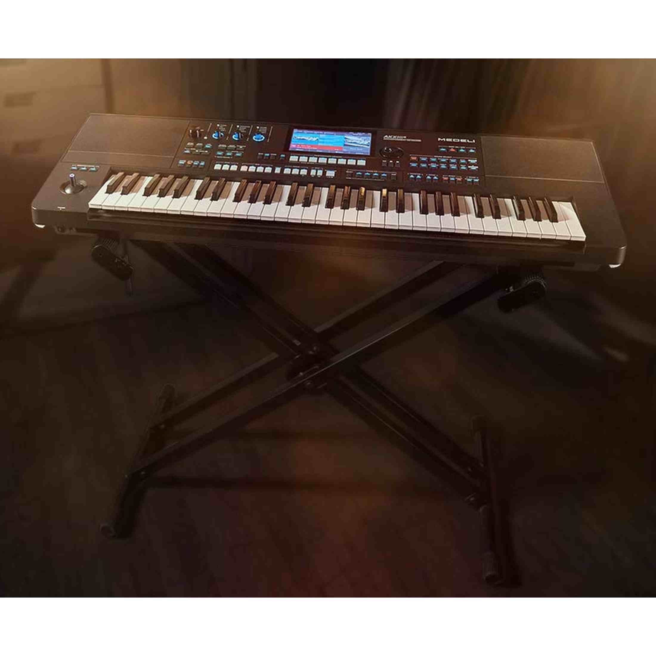 De Medeli AKX10S is een krachtige digitale workstation keyboard met 61 touchgevoelige PTK III-toetsen, ontworpen voor podium, studio of thuisgebruik. Met het heldere 7” touchscreen navigeer je snel door geluiden, stijlen en instellingen. Dankzij de nieuwe sound engine en Creative Expression voices speel je met realistische expressie, terwijl je met de joystick en ademende verlichting meer controle en beleving krijgt tijdens het spelen.