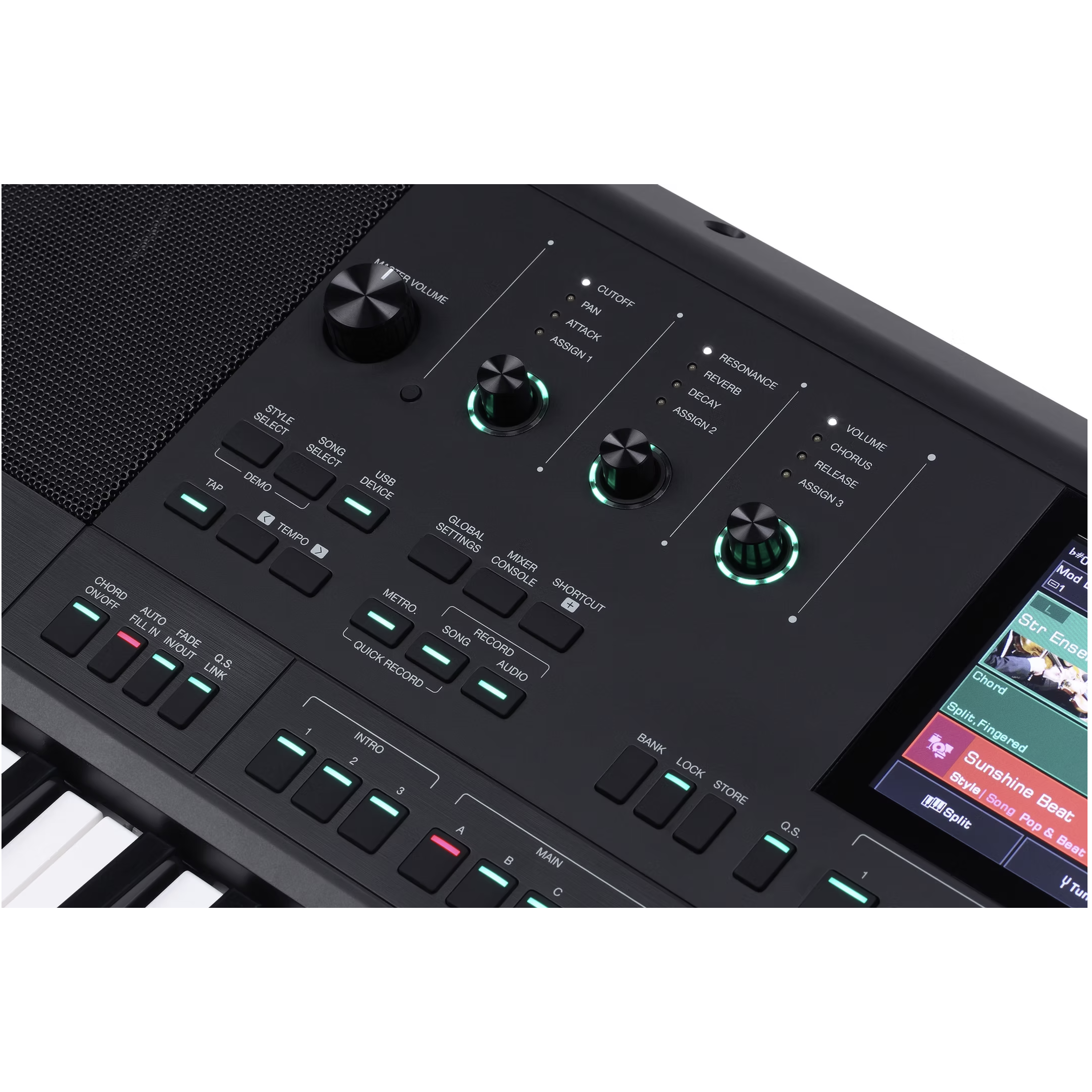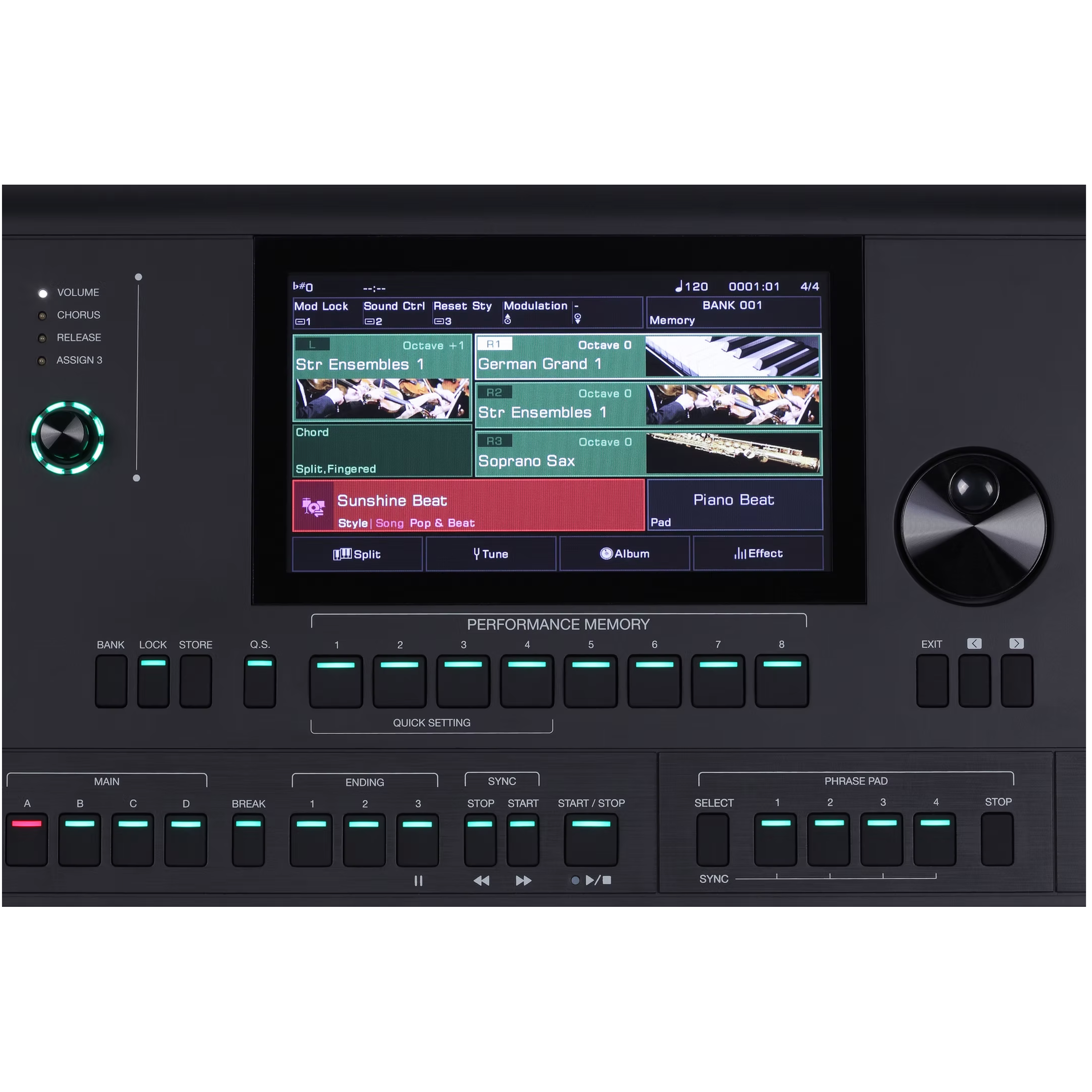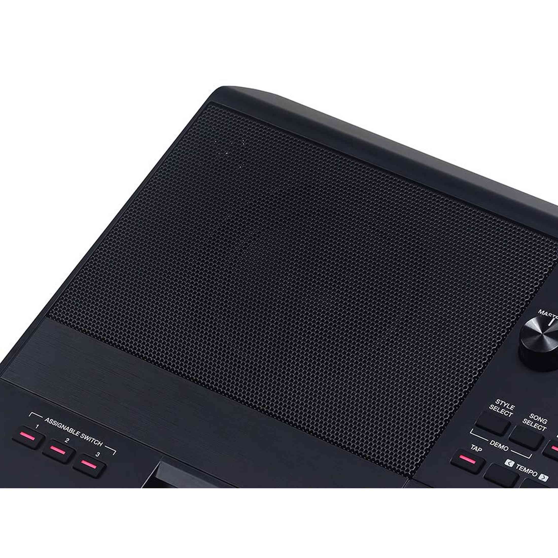 De ingebouwde 4-weg speakerconfiguratie (2 x 25W + 2 x 15W) vult elke ruimte met krachtig en helder geluid. Bluetooth audio & MIDI, uitgebreide DSP-effecten, microfoon-ingang met vocoder en harmonizer, 16-sporen sequencer en realtime style controls maken deze arranger compleet. Deze set wordt geleverd met sustainpedaal, verstelbare standaard en een comfortabele kruk – alles wat je nodig hebt om direct te beginnen.