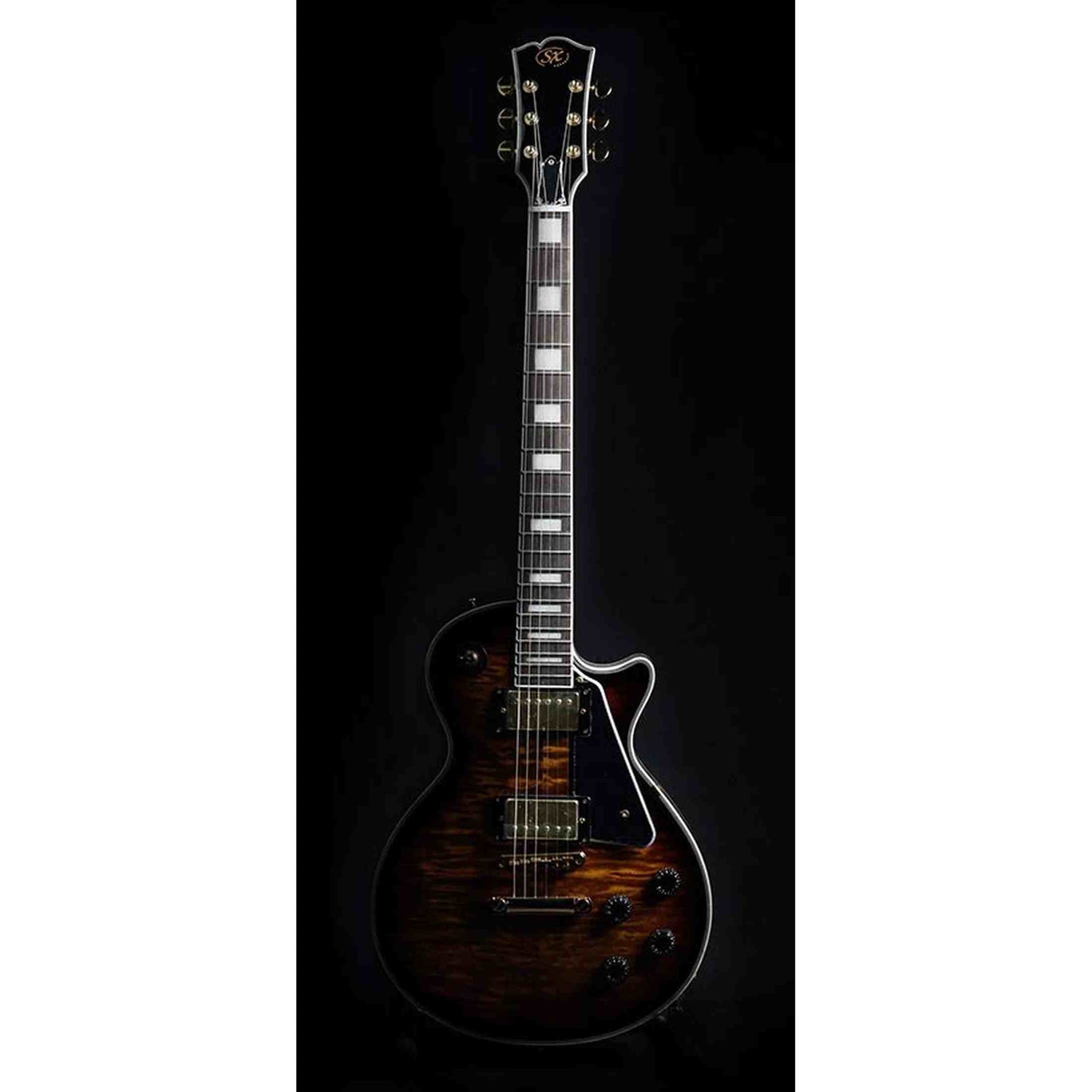 De SX EH3D-DS is een elektrische gitaar in klassieke LP Custom stijl, uitgevoerd met luxe details zoals blokinleg, multi-ply binding en goudkleurige hardware. De mahonie body met gevlamde esdoorn top zorgt voor een warme, volle toon met rijke boventonen. De set-neck constructie draagt bij aan een sterke sustain en comfortabel speelgevoel. Dankzij de twee keramische humbuckers kun je rekenen op een krachtig geluid met voldoende definitie voor rock, blues en meer.