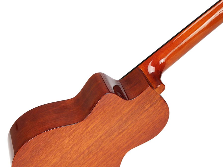 De Mahalo MJ2CEVNA uit de Java Series is een veelzijdige concert ukulele met cutaway-design, speciaal ontworpen voor spelers die zowel akoestisch als versterkt willen schitteren. De nato body met gewelfde achterkant en de mahonie hals zorgen voor een rijke, warme klank met uitstekende projectie. De vintage naturel hoogglans afwerking laat de natuurlijke houtstructuur prachtig naar voren komen en geeft het instrument een klassieke, stijlvolle uitstraling.