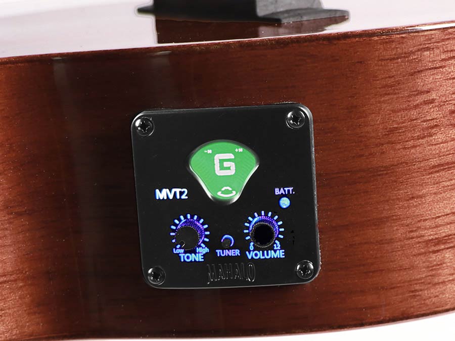 Deze ukulele is uitgerust met het Mahalo MVT2 voorversterkersysteem inclusief onderzadel-pickup en ingebouwde LCD-tuner, ideaal voor versterkt spelen op het podium of in de studio. Aquila Super Nylgut snaren, een Graph Tech NuBone XB zadel en vergulde Waverly-stijl stemmechanieken zorgen voor optimale toonbalans en betrouwbaarheid. De MJ2VTVNA wordt compleet geleverd met een gevoerde gigbag en schouderband.