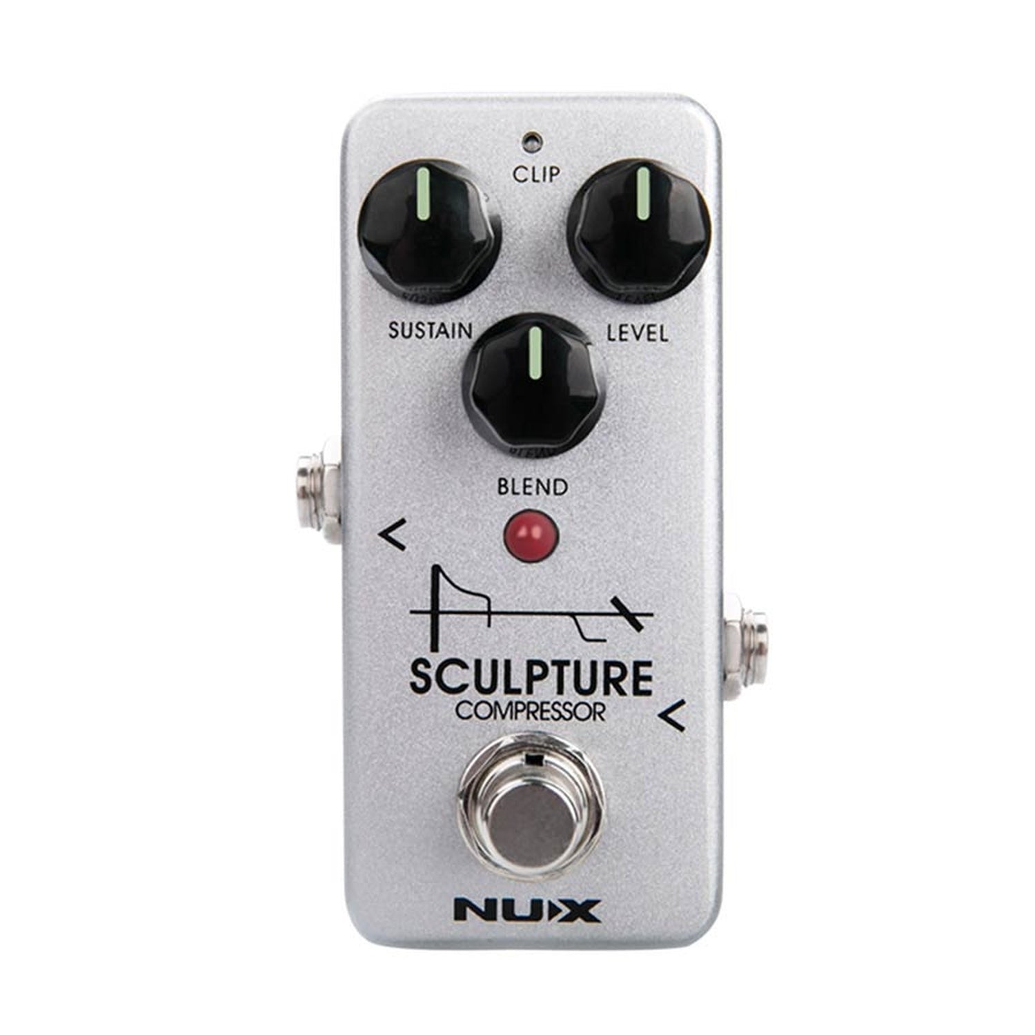 De NUX Sculpture Compressor biedt een consistente volumeregeling en verbetert zowel de hoge als lage signalen in je geluid. Dit pedaal onderdrukt pieken en verhoogt het sustain, waardoor je noten langer doorklinken en je geluid beter in balans blijft.