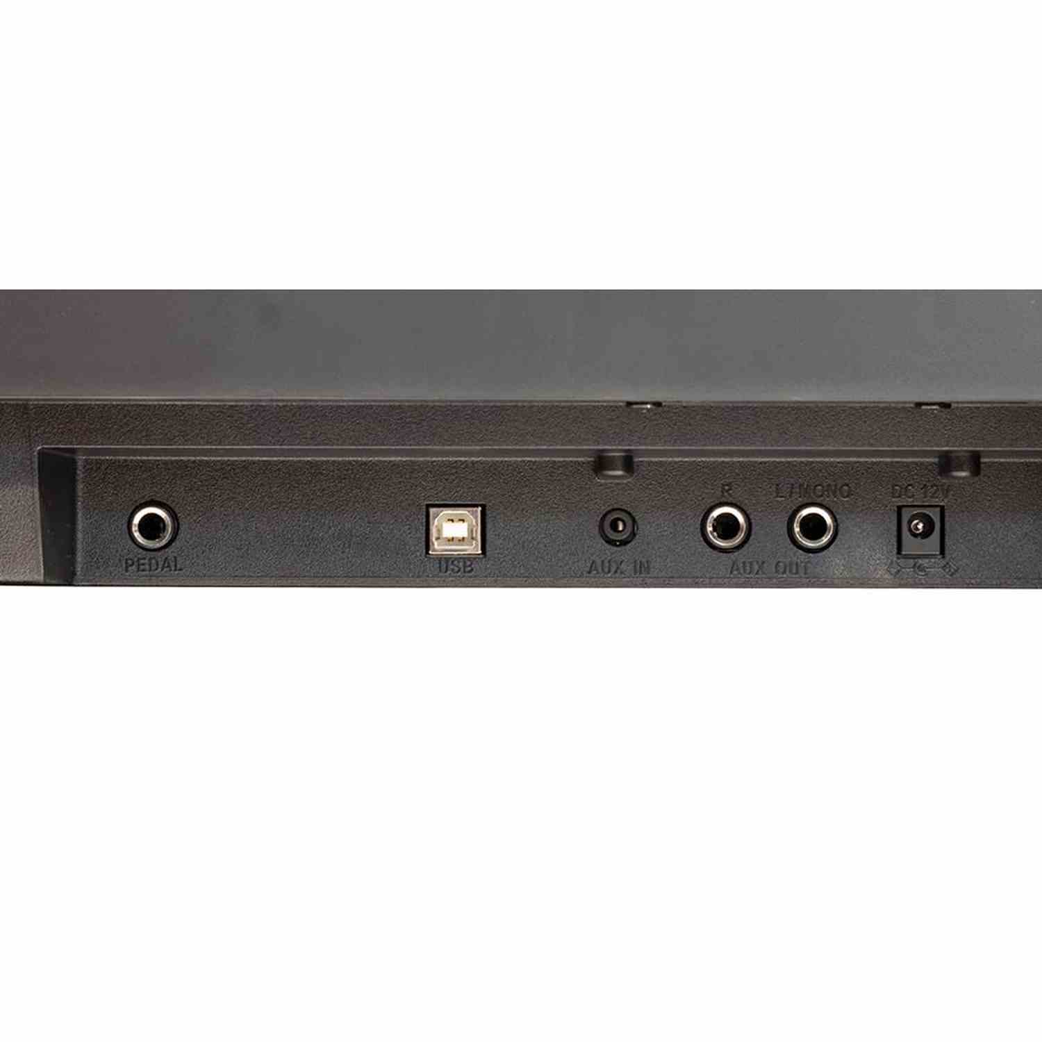 - USB MIDI, AUX IN/OUT, hoofdtelefoonaansluiting (2x), pedaalaansluiting