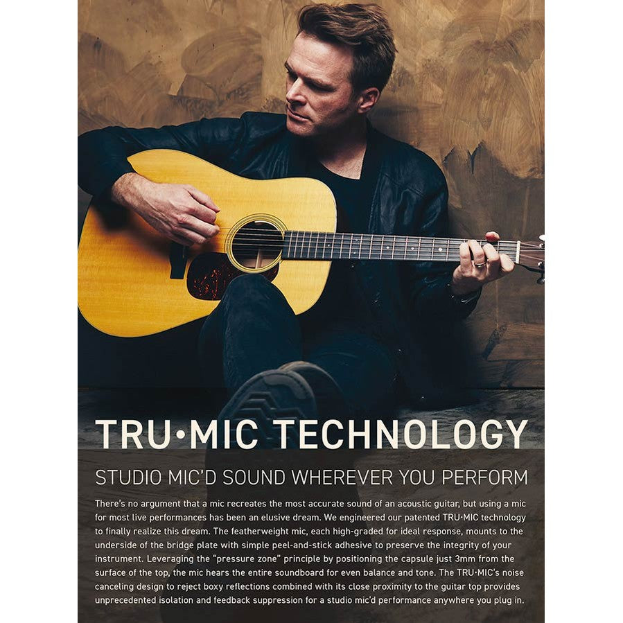 LR Baggs Anthem is een geavanceerd actief microfoonsysteem voor akoestische gitaren, ontworpen voor live gebruik zonder in te leveren op studiomicrofoonkwaliteit. Centraal in het systeem staat de revolutionaire TRU•MIC, die vlak onder het brugzadel wordt gemonteerd en gebruikmaakt van het PZM-principe (Pressure Zone Microphone) voor een uiterst natuurlijk en helder geluid. Door de unieke montage net 3 mm boven het houtoppervlak levert de microfoon een dynamisch en gebalanceerd klankbeeld met uitzonderlijke feedbackonderdrukking – zelfs op het podium.