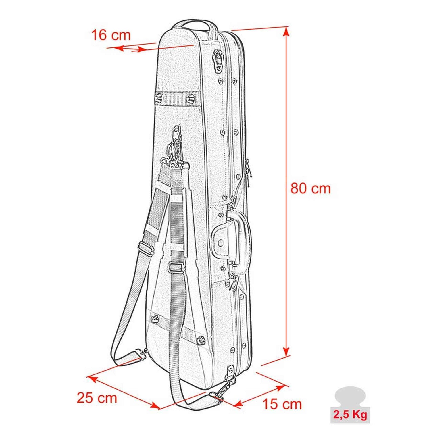 De binnenzijde is volledig gevoerd en afgewerkt met blauw suède. Je neemt twee strijkstokken mee in de vaste houders en bergt accessoires op in het interne accessoirevak. De koffer heeft een muziek vak en wordt geleverd met een beschermdoek. Dankzij de twee rugriemen draag je de koffer comfortabel naar les, repetitie of orkest.