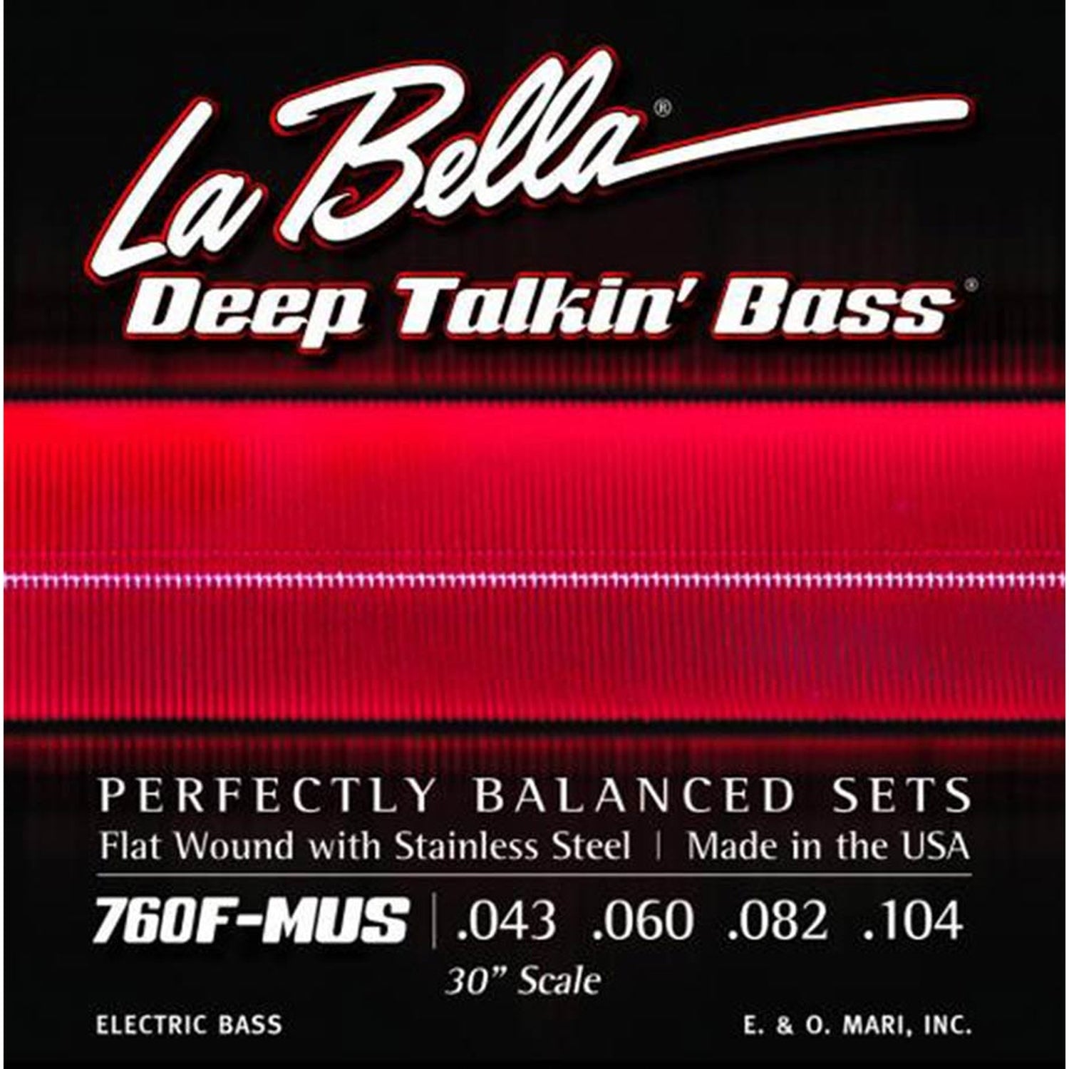 La Bella L-760F-MUS snaren set elektrisch bass, stainless steel flatwound, 30" scale, 043-060-082-104