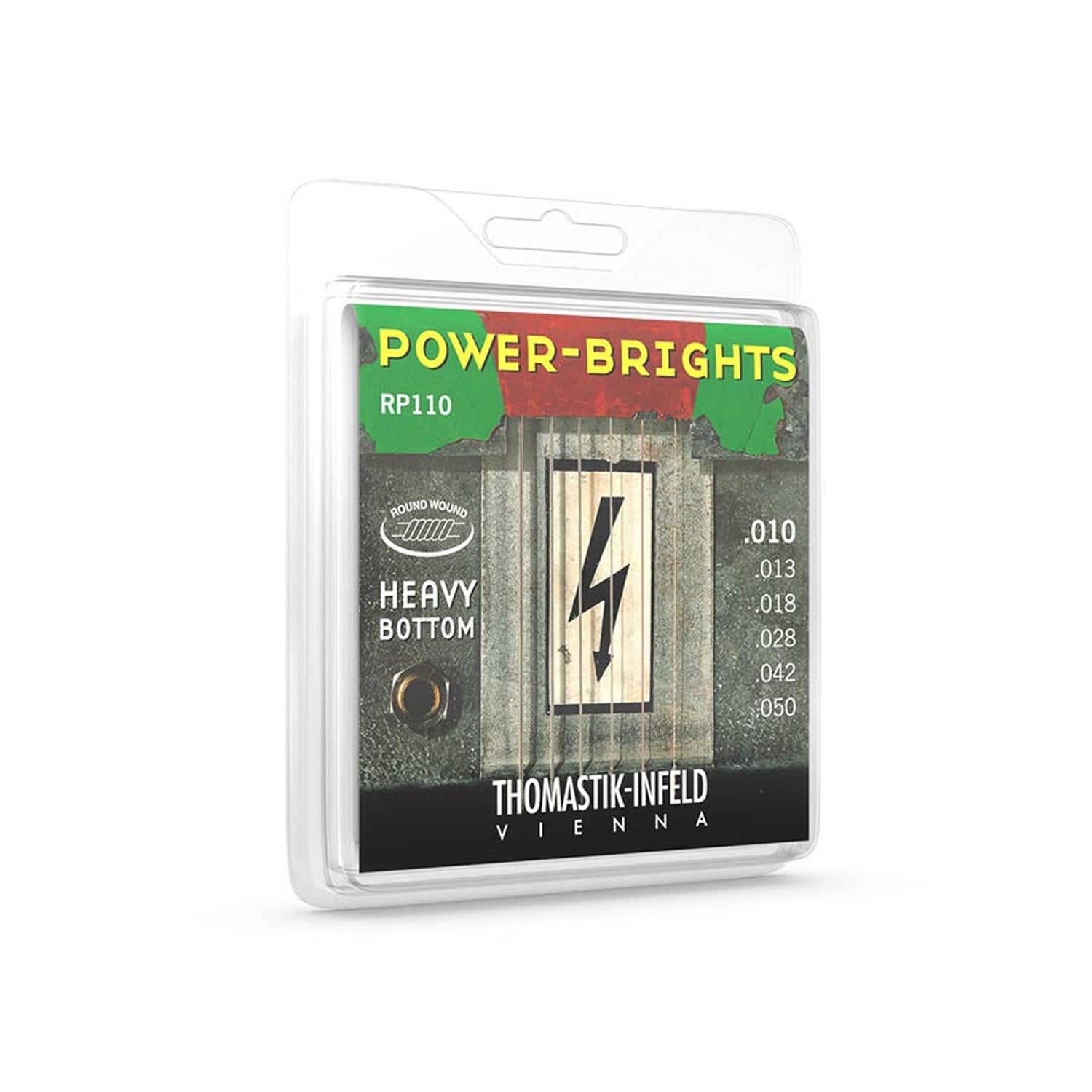 Thomastik Infeld THRP-110 Saitensatz elektrisch, Magnecore, 010-013-018-028-042-050 Roundwound Magnecore-Legierung auf einem flexiblen Hexcore für einen hellen, aggressiven Ton, extra langes Sustain und reduzierten Spielaufwand. Entwickelt, um Obertöne und perkussive Effekte wie Klopfen zu verbessern. Hoher Output: POWER-BRIGHTS lieben Verzerrung!