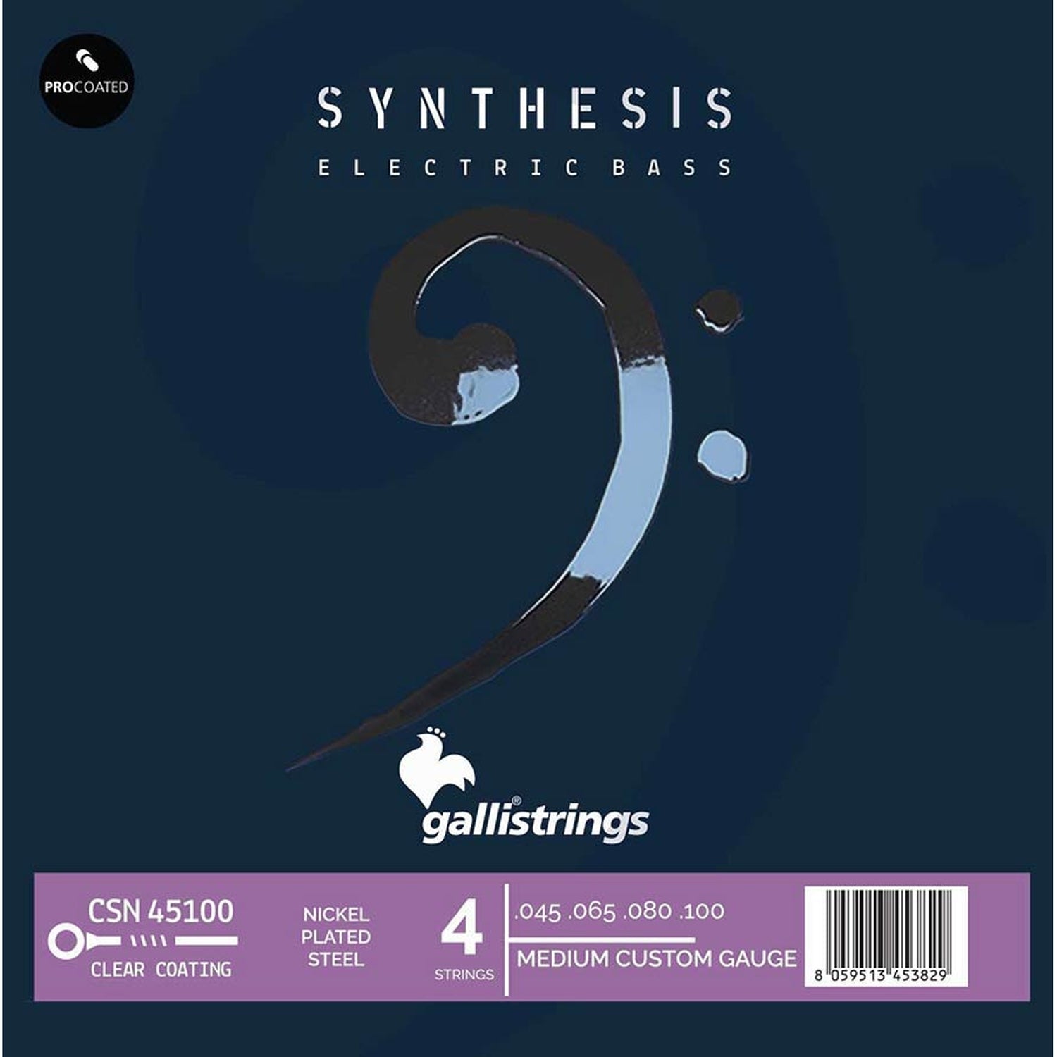 Galli CSN-45100 E-Bass-Saitensatz, beschichtete vernickelte Stahlwicklung, Medium Custom, 045-065-080-100