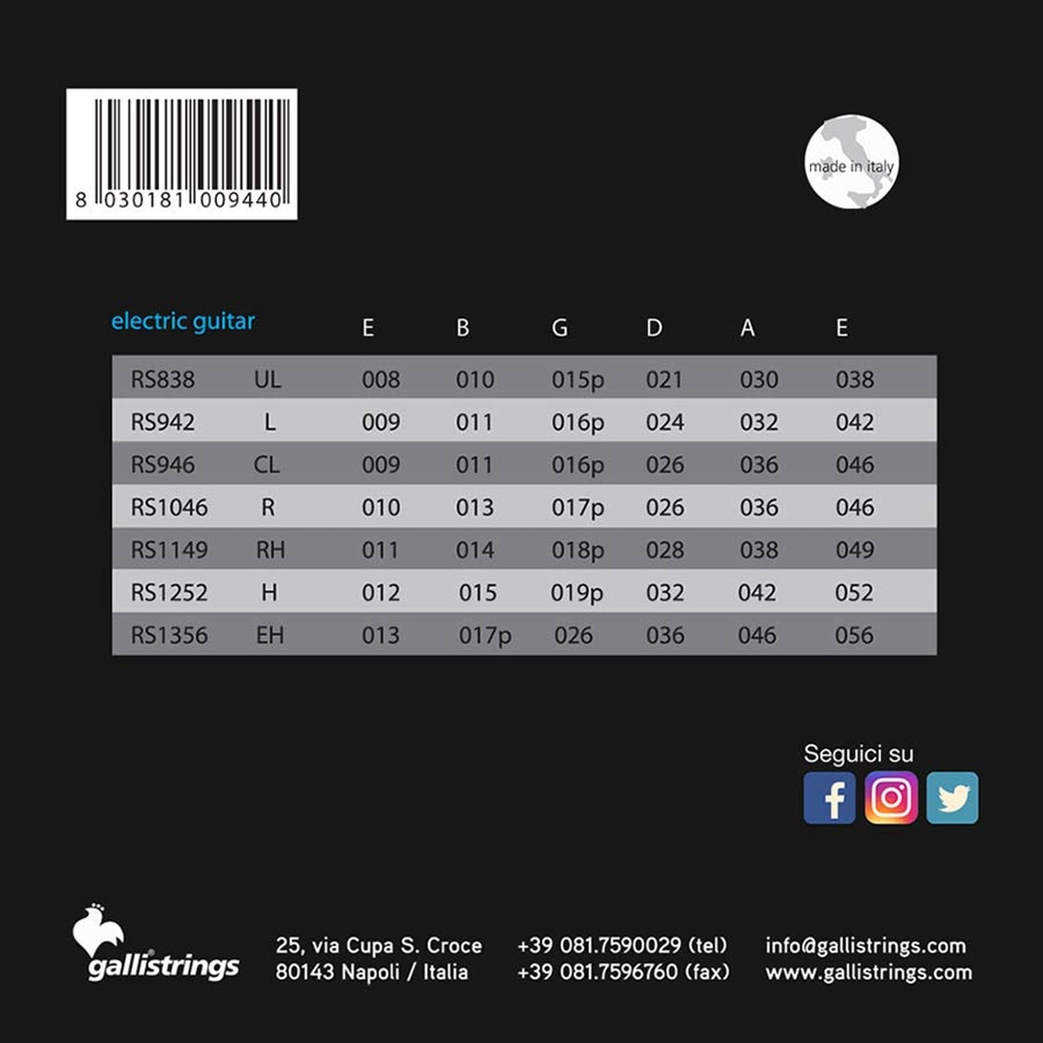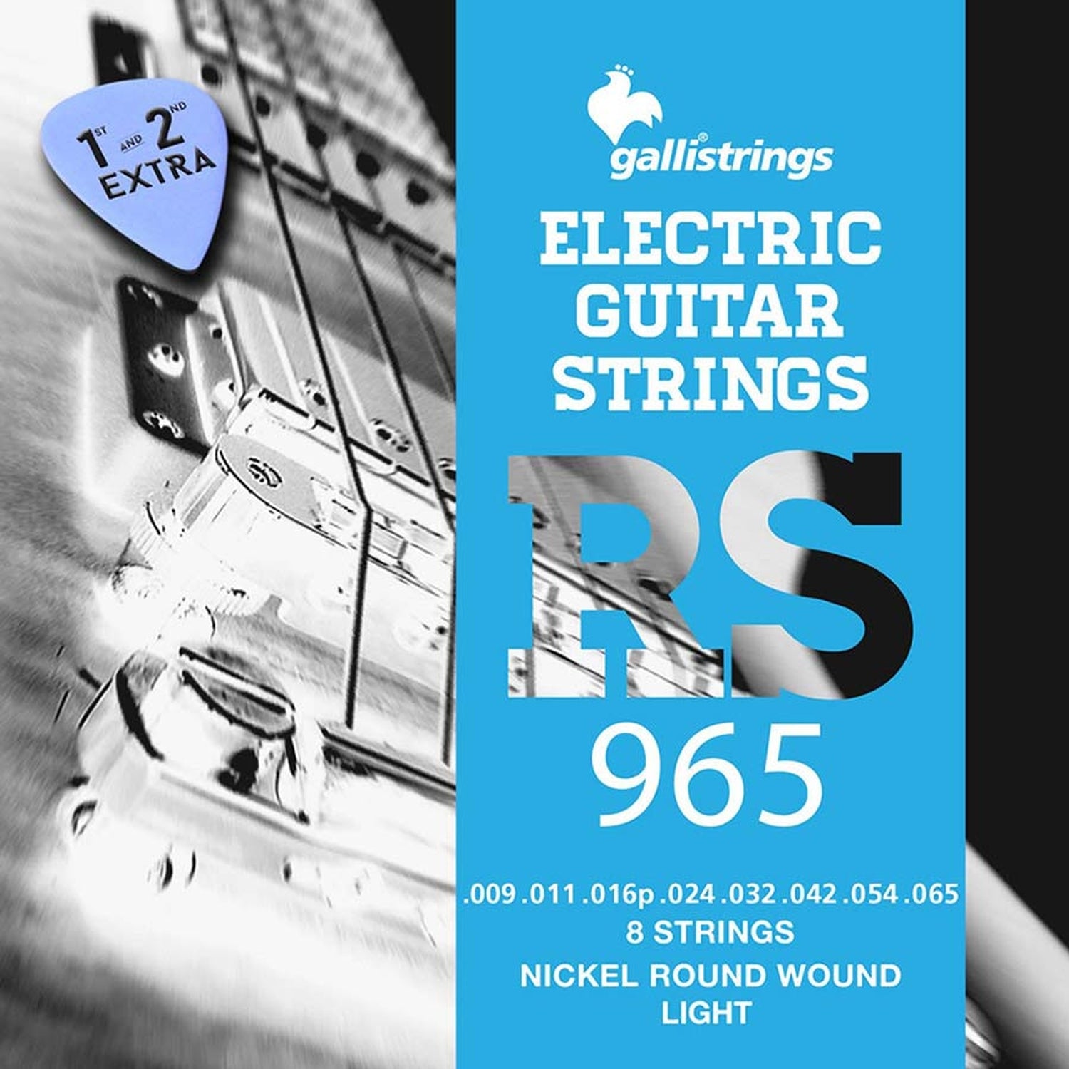 Galli RS-0965 8-Saiter-Satz elektrisch, Nickel Roundwound, leicht, 009-011-016-024-032-042-054-065