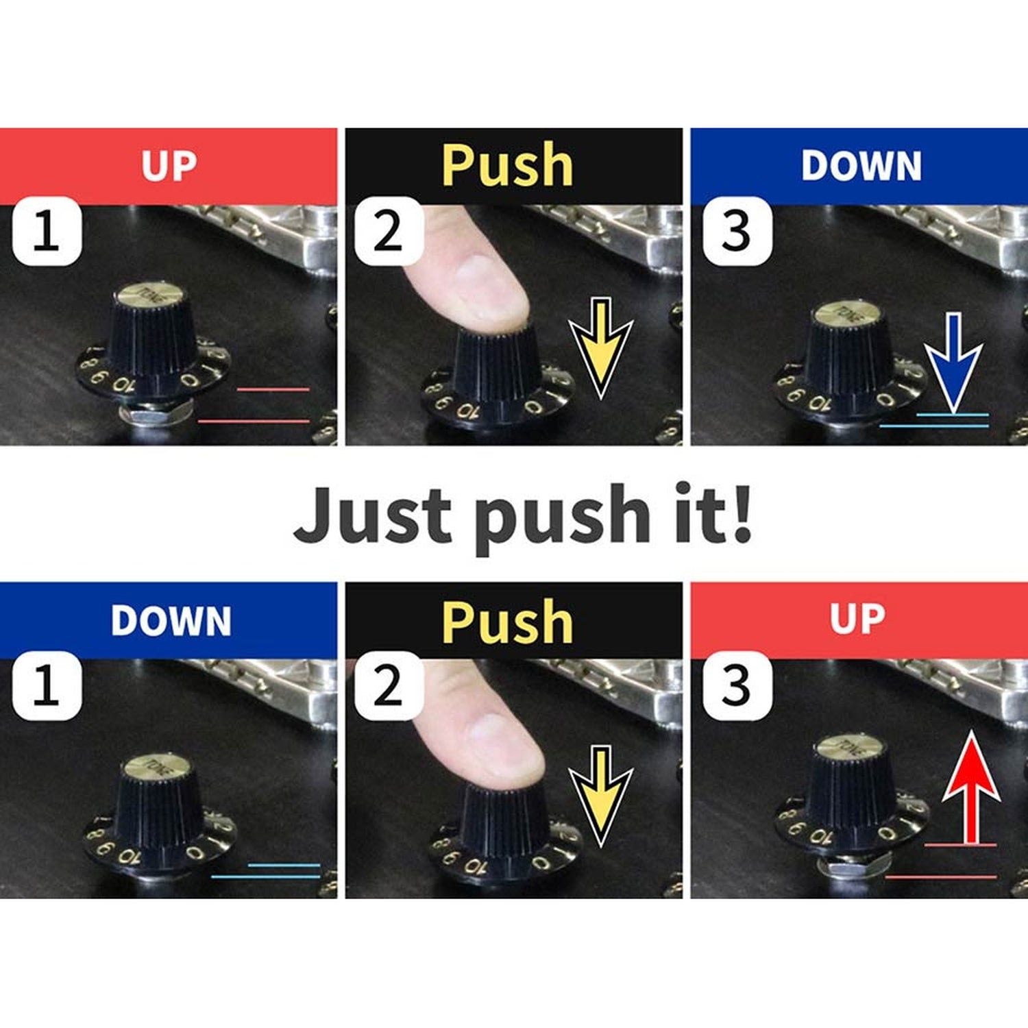 - Push/Push-DPDT-Umschaltmechanismus für mühelose Wahl zwischen Tonabnehmerkonfigurationen, wie z. B. Spulenabgriff oder Phasenumkehr.