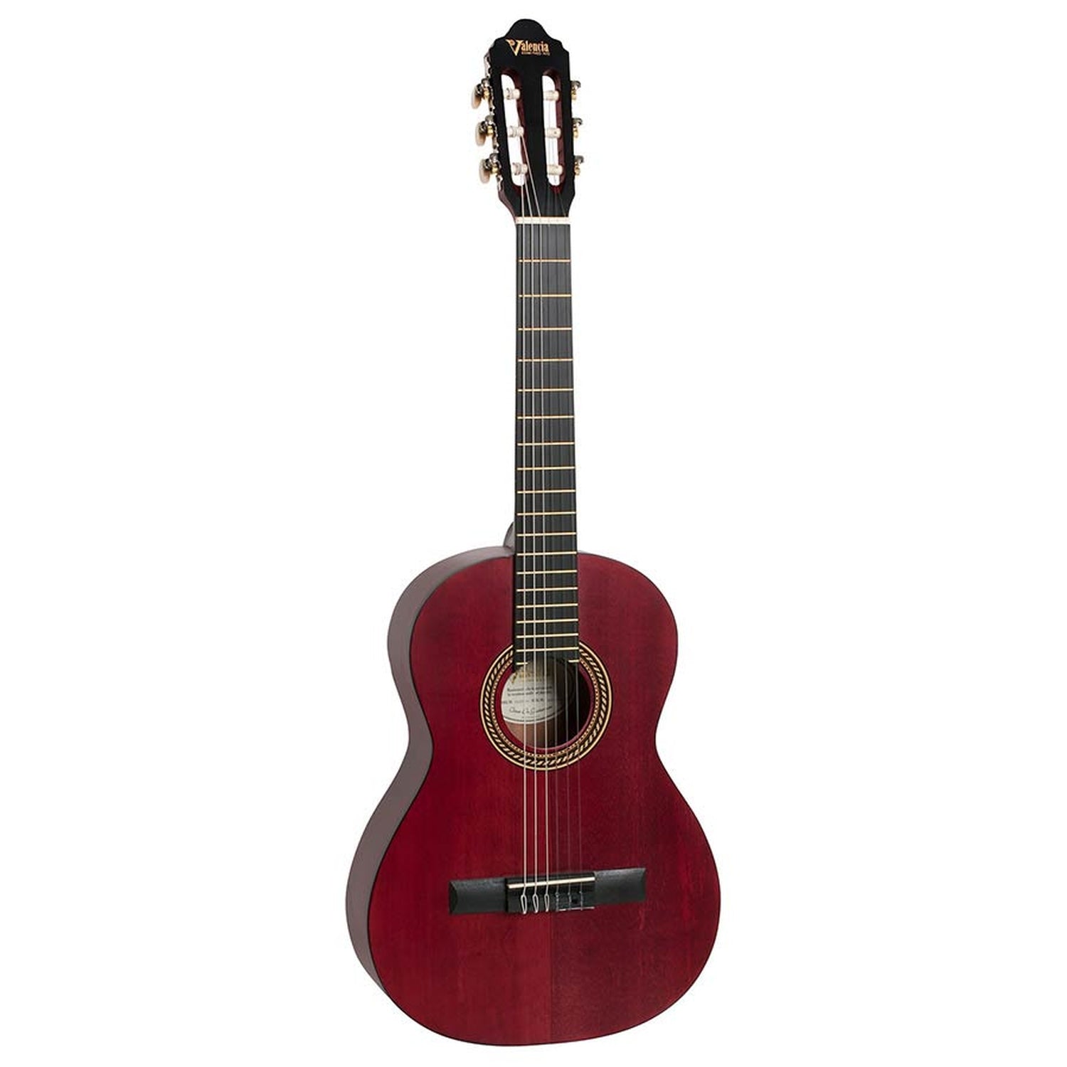 Valencia VC203TWR Konzertgitarre 3/4, Sitka-Fichtendecke, Nato-Boden und -Zargen, transparentes weinrotes Finish