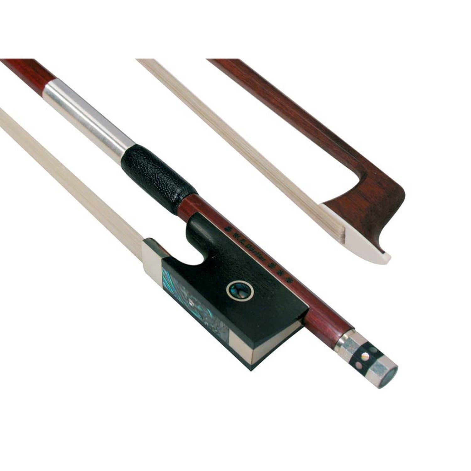 Dörfler DV21 Geigenbogen, 4/4, Silber, Fernambuk, runde 1a Fernambukstange, feiner Ebenholzfrosch, Pariser Auge, dreiteiliges Ebenholzbeinchen mit acht eingelegten Augen, Silberdrahtwicklung