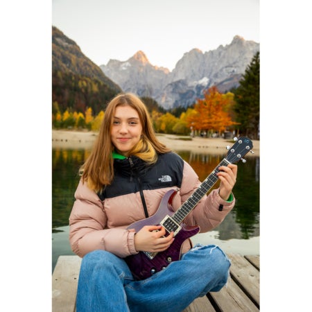 Die Flight Vanguard aus der Rock-Serie ist eine elektrische Tenor-Ukulele, die bereit für die Bühne ist. Ihre massive Korpuskonstruktion, die zwei Humbucker und die von PRS inspirierte Korpusform verleihen dieser Ukulele einen Look und Sound, den man sonst eher von Gitarren kennt. Der Mahagoni-Korpus und -Hals liefern einen vollen, warmen Ton, während die geflammte Ahorndecke mit transparentem, violettem Finish sofort ins Auge fällt. Schließen Sie sie an einen Gitarrenverstärker oder ein Effektboard an und experimentieren Sie mit Verzerrung, Delay oder Chorus – die Vanguard ist bereit.