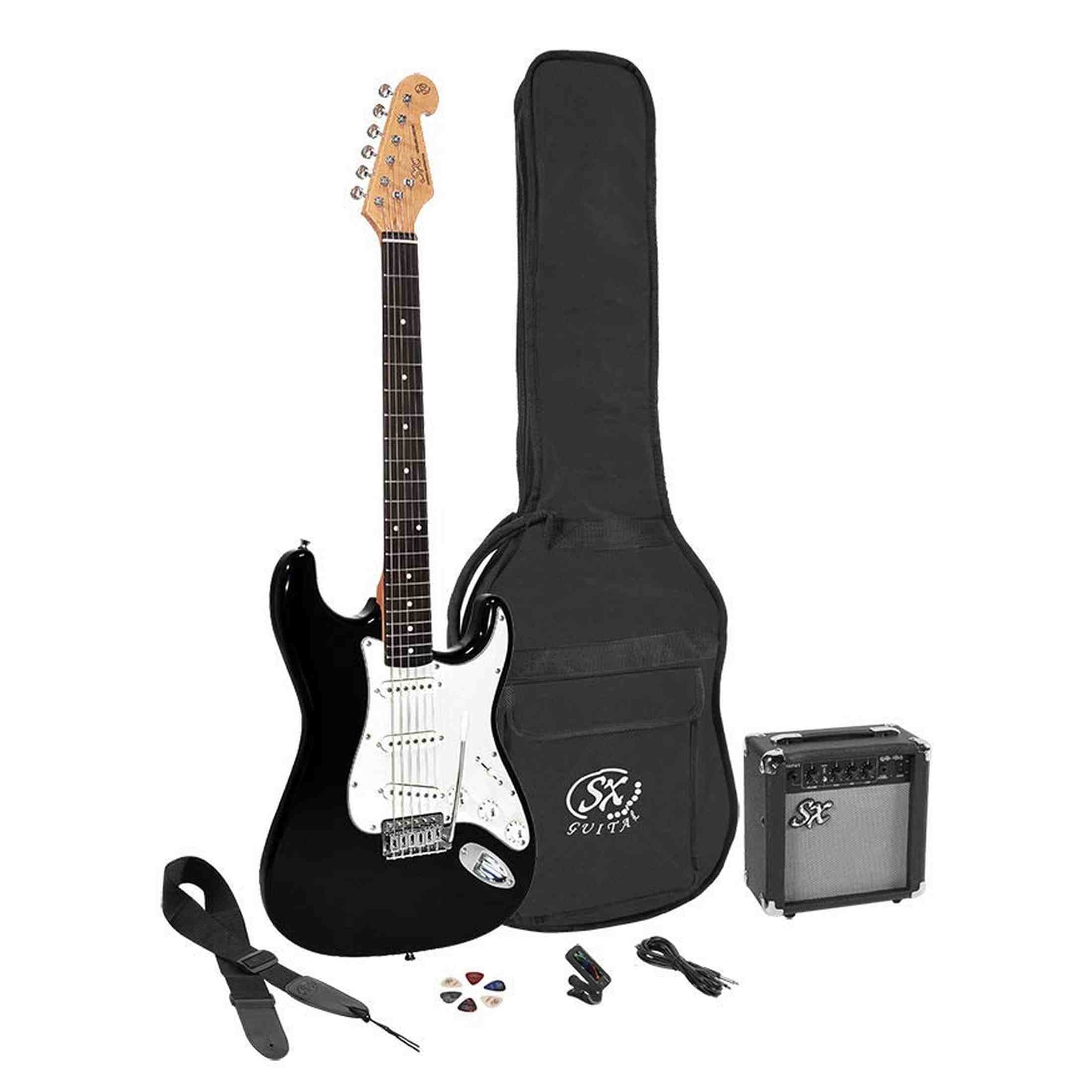 SX SE1SK-BK E-Gitarren-Set – Komplettes Starterpaket mit Verstärker, Gigbag und Zubehör, schwarz