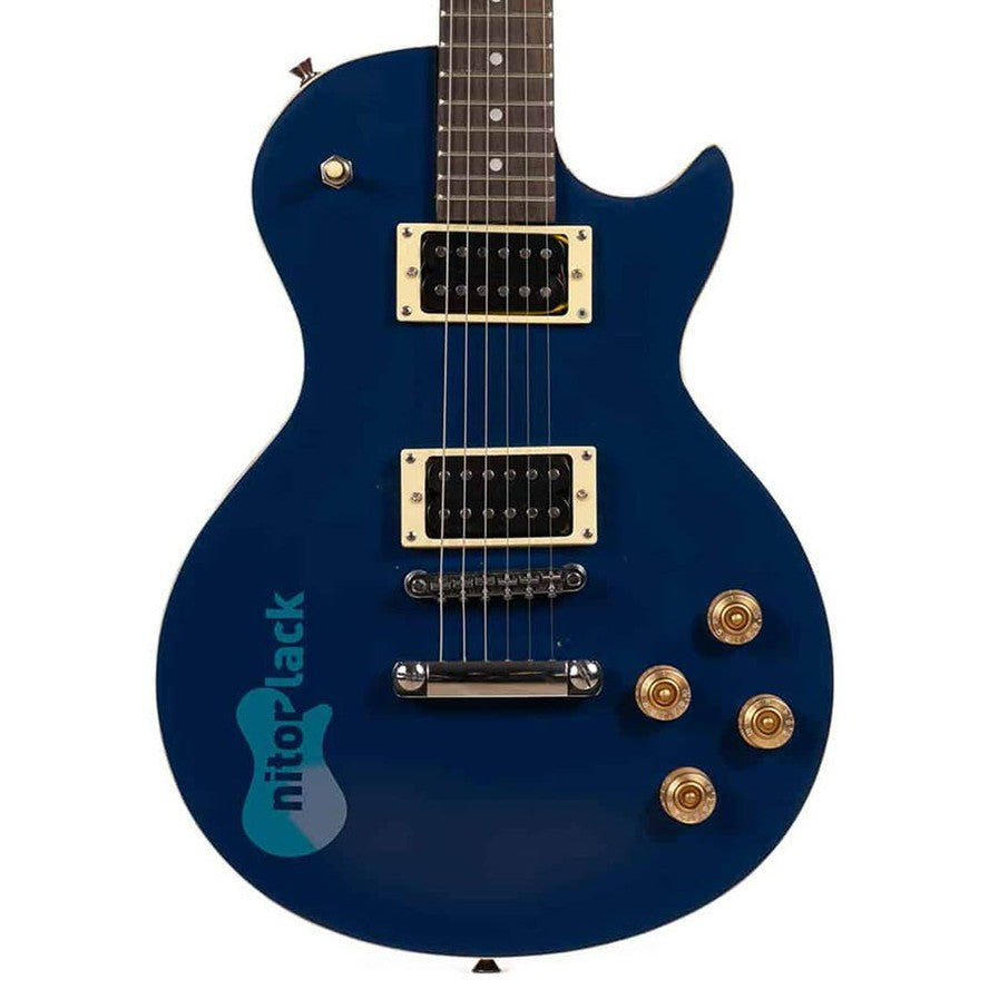 NitorLACK N167024108 is een tweevoudige polyurethaanlak in de kleur Satin Blue, een klassieke diepe blauwtint zoals gebruikt op legendarische Gibson SG en Les Paul modellen. De satijnen afwerking geeft een stijlvolle, moderne look met een subtiele glans, zonder de intensiteit van hoogglans. Hierdoor behoudt het instrument een professionele uitstraling met een zachte, elegante touch.