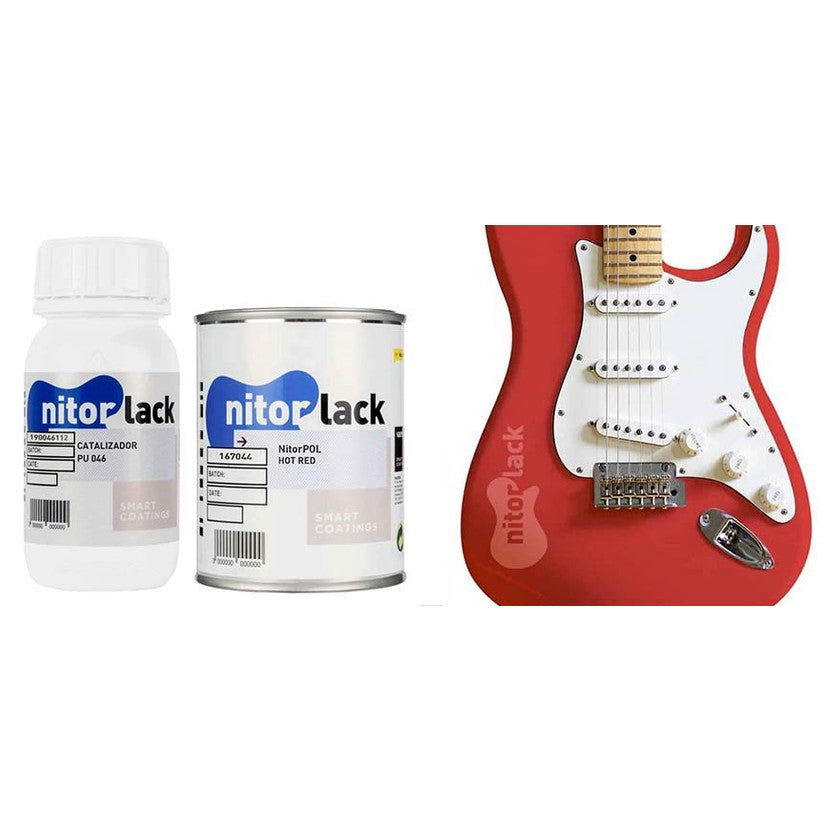 NitorLACK N167044108 is een tweevoudige polyurethaanlak in de kleur Hot Red, een moderne, levendige roodtint zoals gebruikt door de Fender Custom Shop. Deze kleur lijkt op Torino Red, maar heeft een 10–15% hogere verzadiging, wat zorgt voor meer intensiteit, karakter en diepte in de afwerking. Hot Red geeft gitaren een krachtige visuele impact en combineert perfect met zowel lichte als donkere toetsmaterialen.