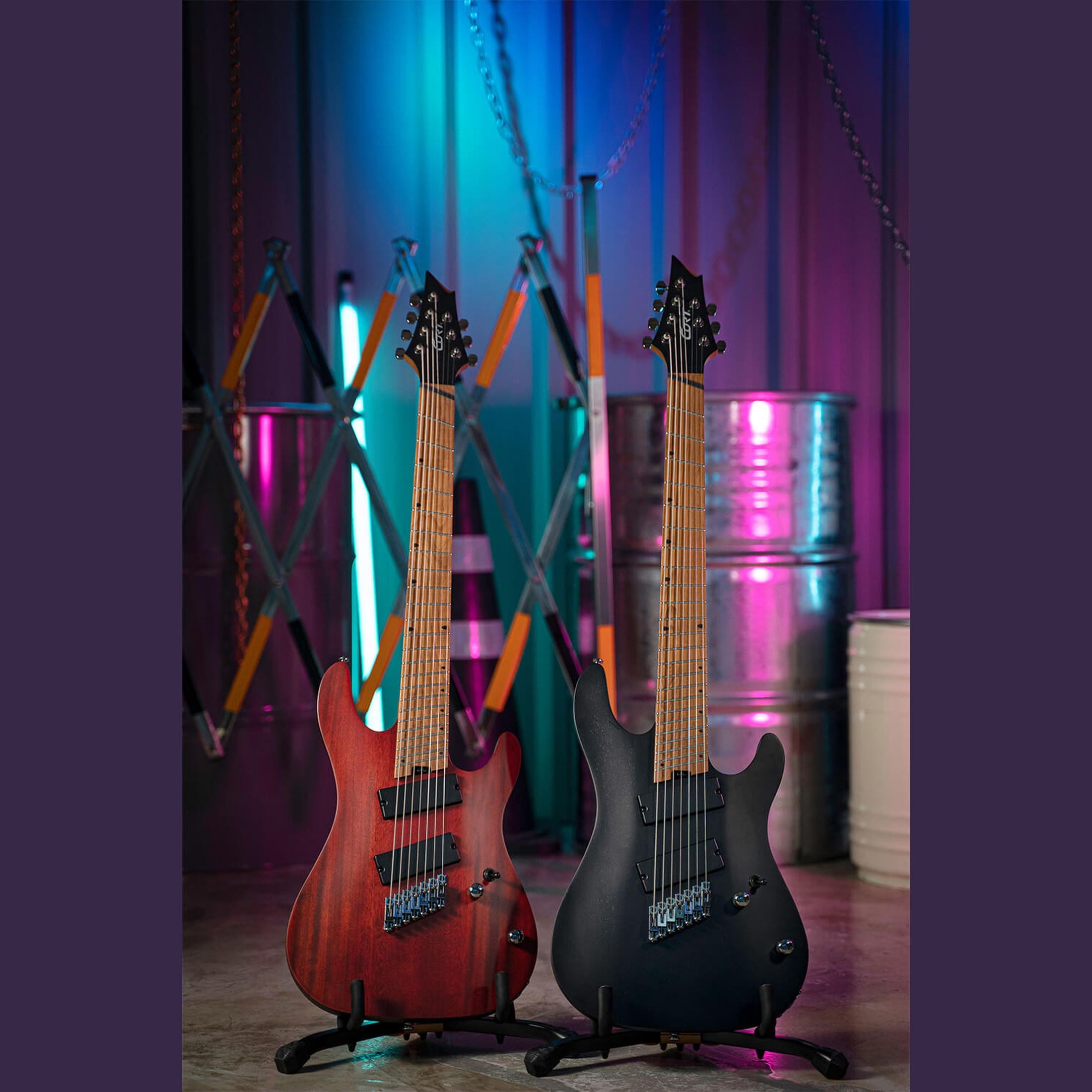 The Cort KX307 Multi Scale OPM is a 7-string electric guitar designed for modern metal and low tunings. Its mahogany body delivers a warm, deep tone with strong lows and clear mids. The roasted maple neck and fretboard provide extra stability and a fast playing response. The multi-scale design, ranging from 25.5 to 27 inches, offers tight low strings while maintaining comfortable tension for the higher strings.
