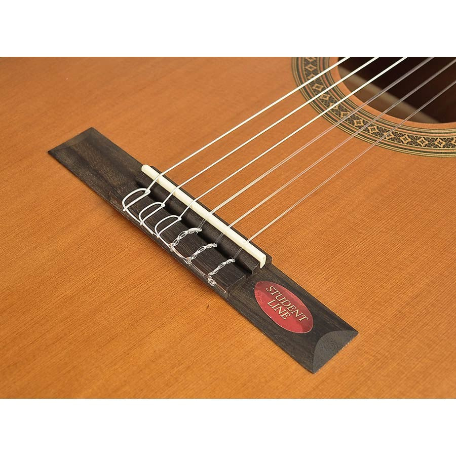 De Salvador Cortez CC-06-SN is een 7/8 klassieke gitaar uit de Student Series, ontworpen voor gitaristen die op zoek zijn naar een iets compacter model zonder in te leveren op klankkwaliteit. Met een mensuurlengte van 628 mm en een topkam van 50 mm breed is dit Señorita-model uitermate geschikt voor spelers met kortere armen of kleinere handen. Ondanks het compactere ontwerp behoudt de gitaar een volle klank dankzij de standaard klankkastgrootte.