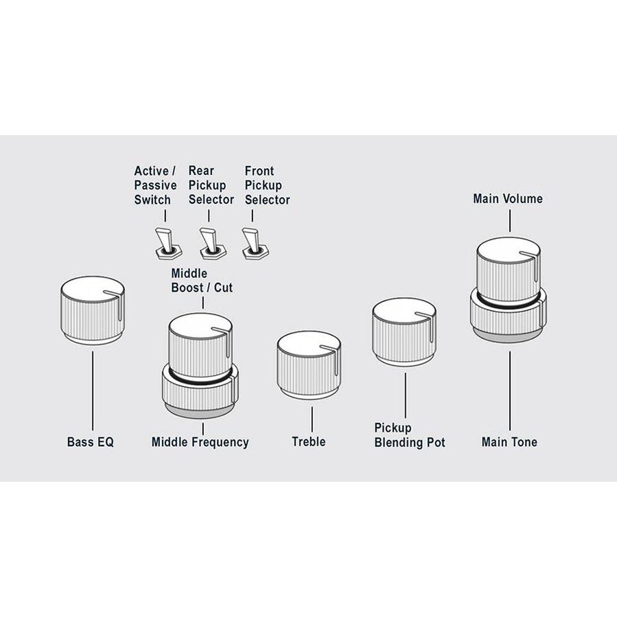 - Preamp: Marcus Miller Heritage-3 met mid-frequentieregeling