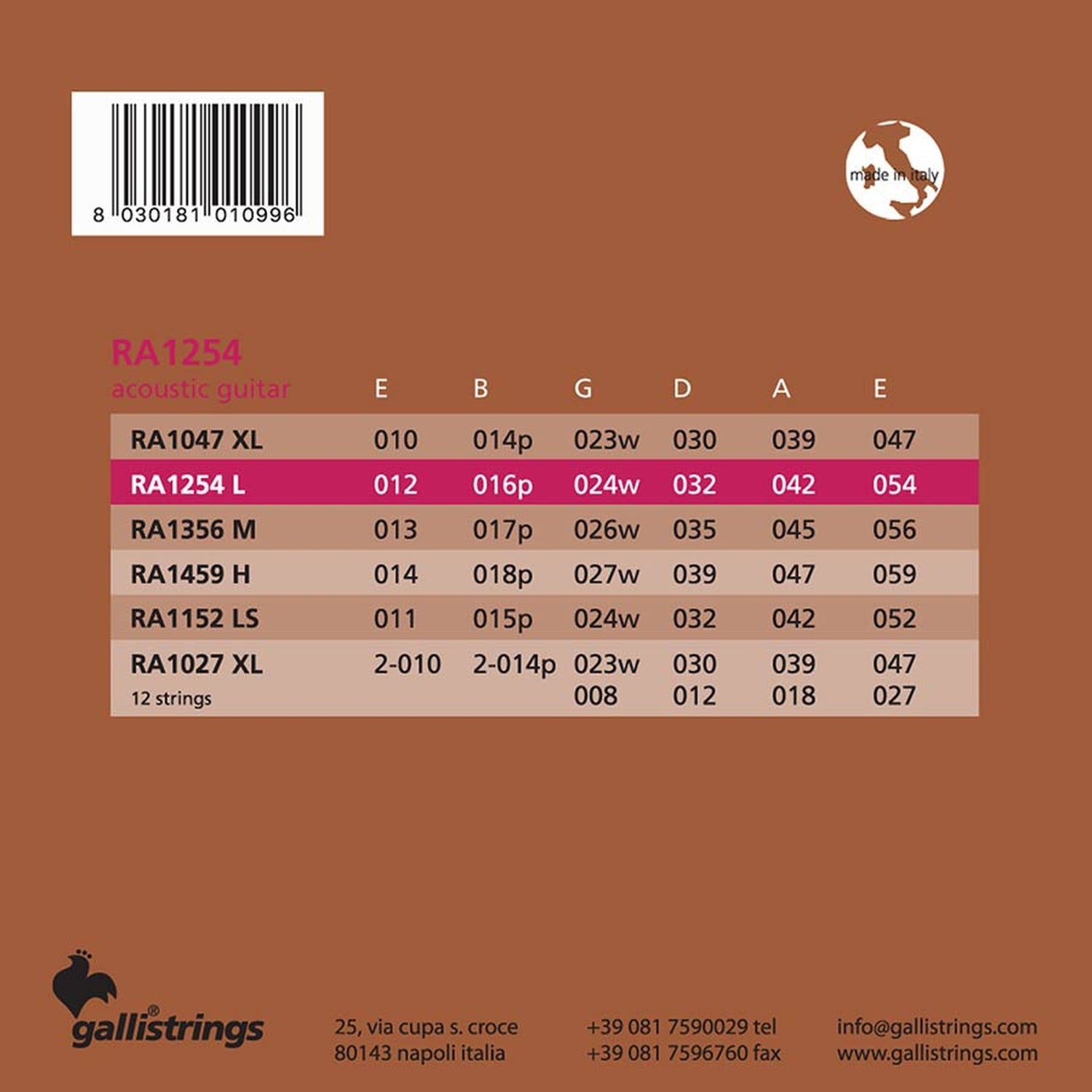 Galli RA1254 snaren set acoustic 80/20 bronze wound, light, 012-016-024-032-042-054