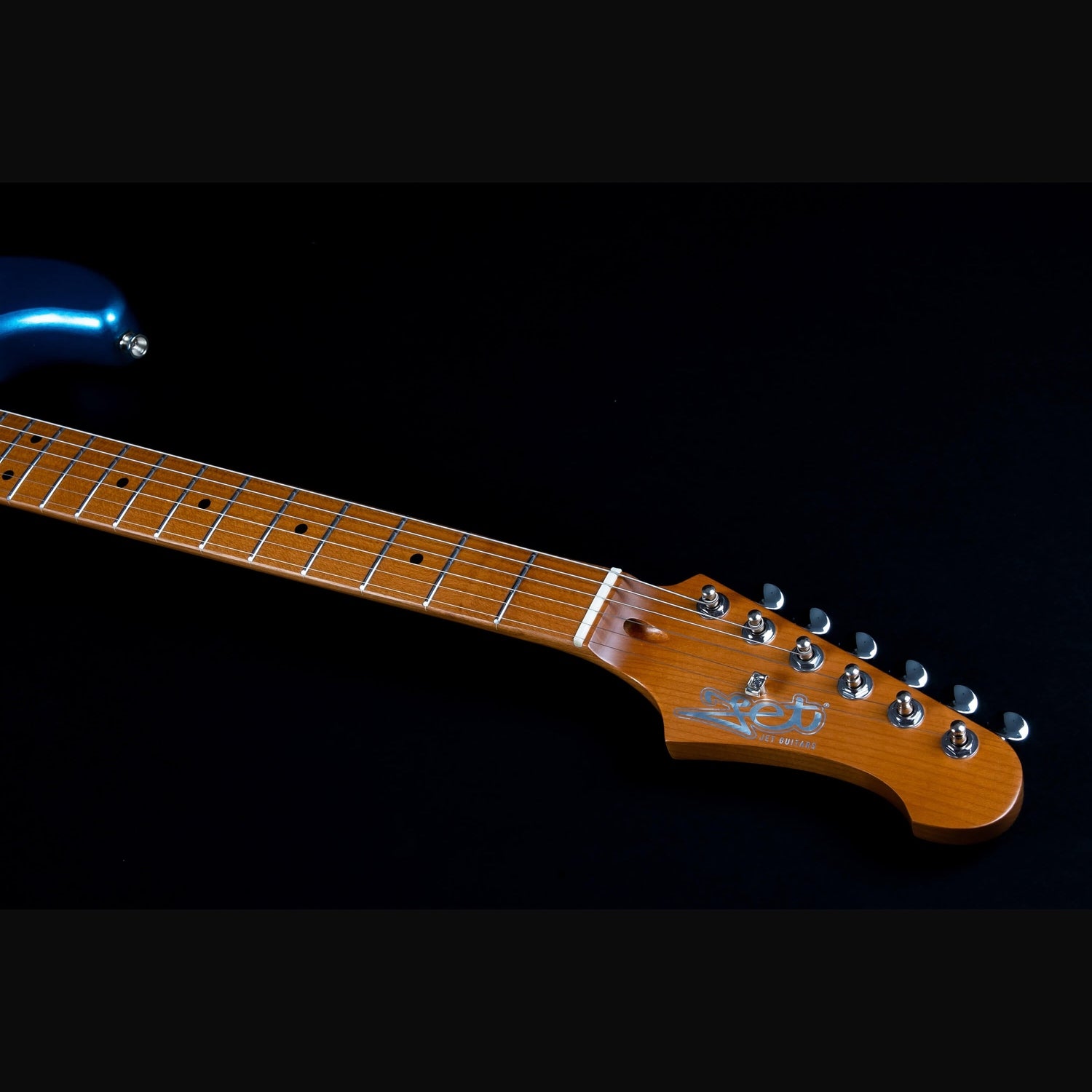 De Jet JS-400 LPB is een elegante gitaar met een verfijnde Placid Blue afwerking, perfect voor de moderne muzikant. De hals van Canadees geroosterd esdoorn biedt zowel duurzaamheid als een warme klank, terwijl de roasted maple of rosewood toets (afhankelijk van het model) zorgt voor een comfortabele speelervaring. Met het moderne C-profiel en de 9,5-inch radius speel je met gemak en precisie, en de 25,5-inch schaallengte maakt deze gitaar veelzijdig in klank.