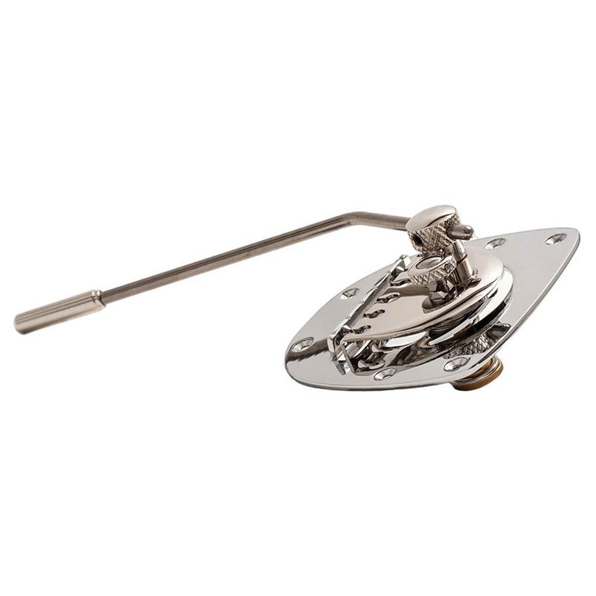 Göldo Originals TDG1JM DG Tremolo Custom Vibrato System is een geavanceerde upgrade voor Jazzmaster- en Jaguar-gitaren, uitgevoerd in een elegante nikkelfinish. Dit vibratosysteem is géén replica van het klassieke Fender-ontwerp, maar biedt een moderne herinterpretatie met superieure speelbaarheid en verbeterde klankoverdracht. Ondanks de innovatieve techniek past het systeem zonder enige aanpassing — geen boren, frezen of extra gaten nodig.