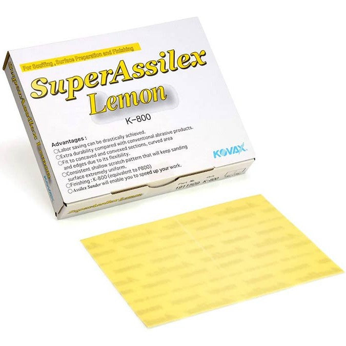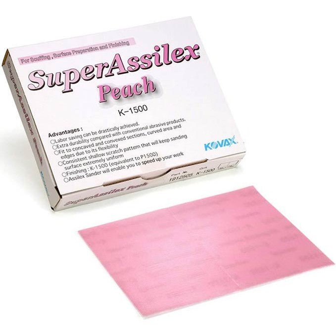 De Kovax Assilex ST latex schuurvellen (modelnummer: Assilex ST) zijn ontwikkeld voor uiterst gelijkmatig en efficiënt schuren van gelakte oppervlakken. Deze professionele schuurvellen van 130 x 170 mm zijn voorzien van een flexibele latex rug, waardoor ze zich uitstekend aanpassen aan zowel vlakke als gebogen vormen. Ze zorgen voor minimale krassenvorming en leveren een consistente finish, ideaal voor de tussen- en eindfase van het schuurproces.