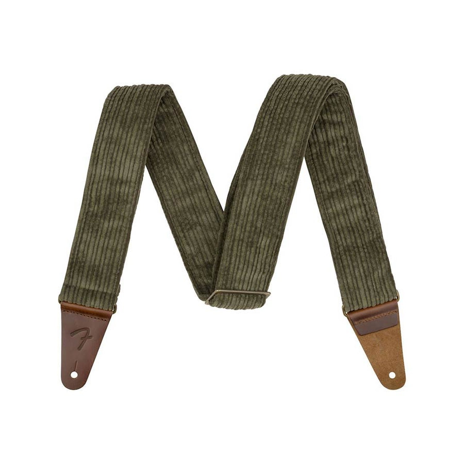 Fender 990639076 gitaarband, antiek olijf, polyester corduroy, antieke messing hardware Our softest strap yet! Featuring three warm colorways, the Corduroy Strap is crafted from a double-sided polyester corduroy and offers full grain leather ends for ultimate comfort and durability.