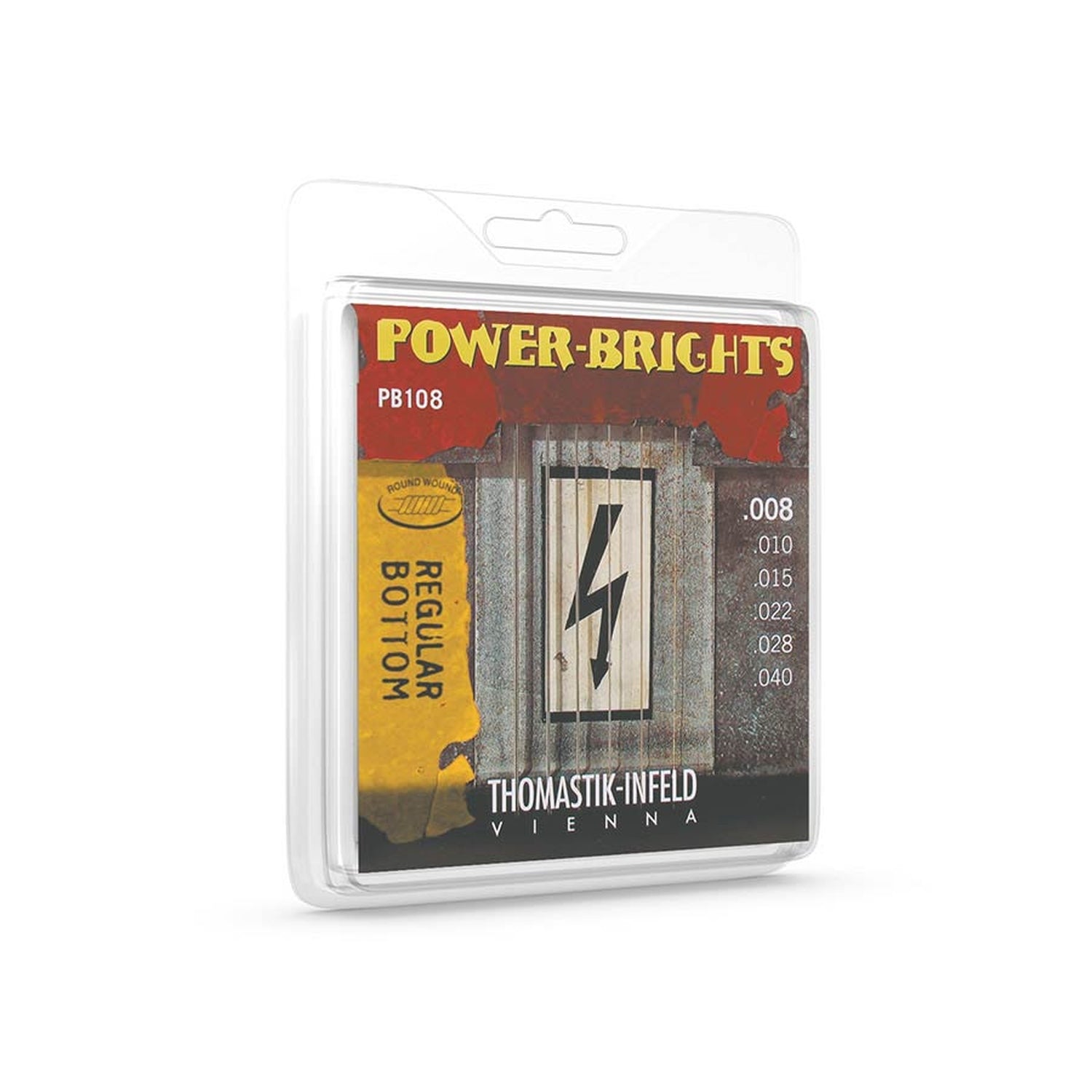 Thomastik Infeld THPB-108 snaren set elektrisch, magnecore, 008-010-015-022-028-040 Roundwound Magnecore alloy on a flexible hexcore for a bright aggressive tone, extra long sustain and reduced playing effort. Designed to enhance harmonics and percussive effects like tapping. High output: POWER-BRIGHTS love distortion!