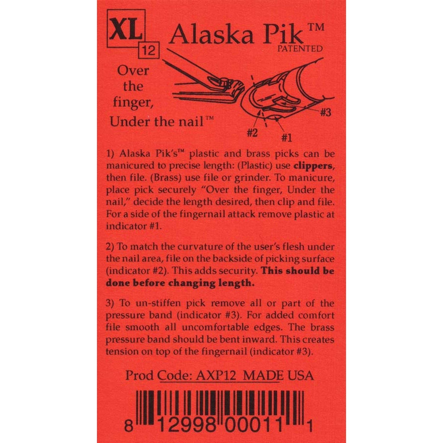 Alaska Pik AXP-12 vingernagelpick plastic, 12-pack, extra groot 22mm. Unique type of pick that fits OVER THE FINGER, UNDER THE NAIL.