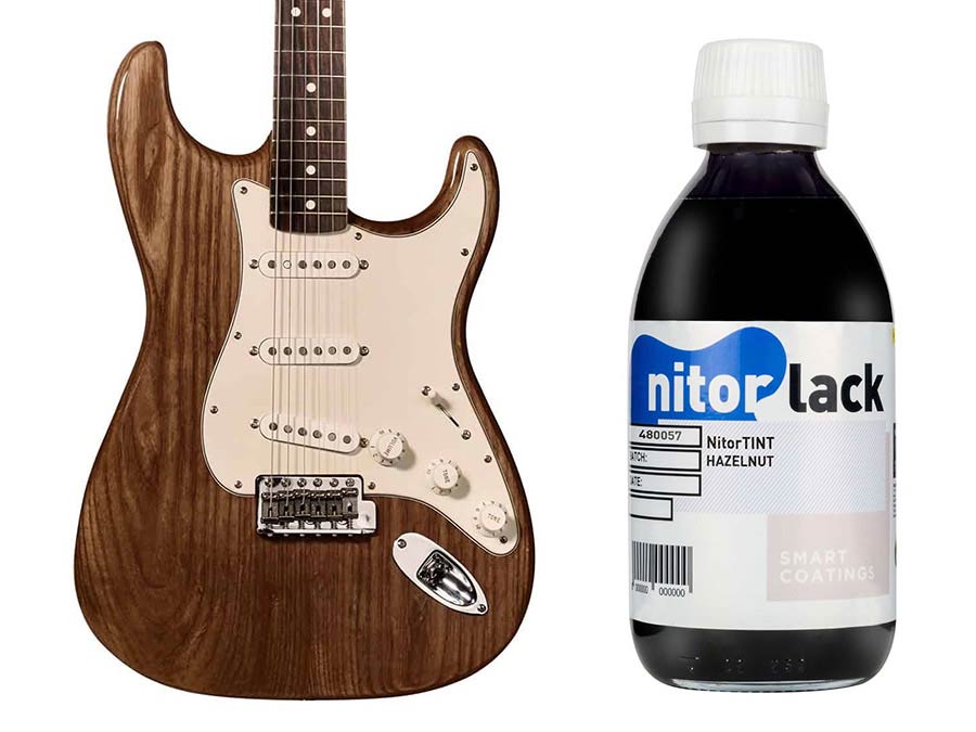 De NitorLACK N480057112 NitorTINT Hazelnut is een geconcentreerde kleurstof van 250 ml met een warme, nootachtige hazelnoottint. Deze kleurstof is speciaal ontwikkeld voor houten muziekinstrumenten zoals gitaren en bassen, en biedt een natuurlijke kleuring met maximale transparantie. De kleur versterkt het karakter van het hout zonder de houtnerf te verdoezelen, wat resulteert in een rijke, klassieke afwerking.