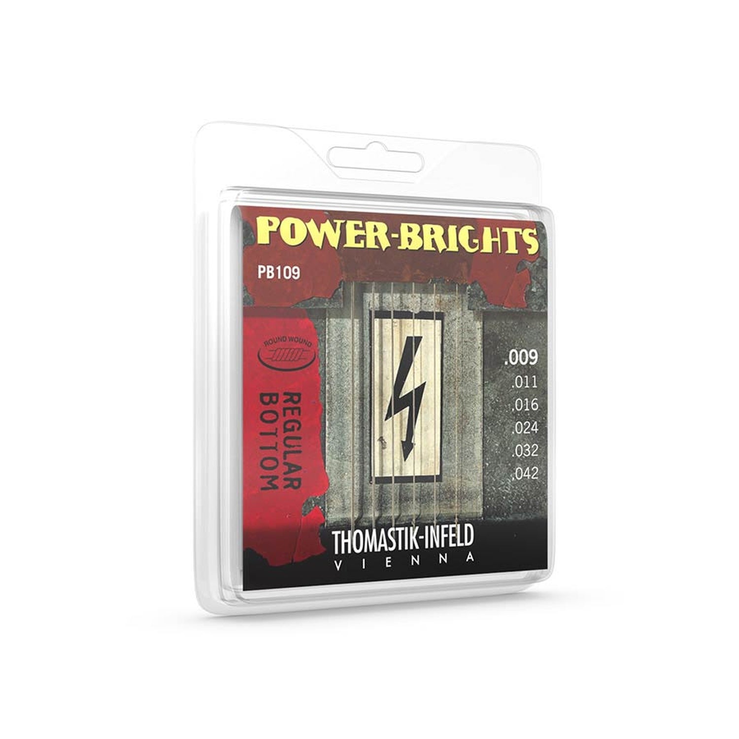 Thomastik Infeld THPB-109 snaren set elektrisch, magnecore, 009-011-016-024-032-042 Roundwound Magnecore alloy on a flexible hexcore for a bright aggressive tone, extra long sustain and reduced playing effort. Designed to enhance harmonics and percussive effects like tapping. High output: POWER-BRIGHTS love distortion!