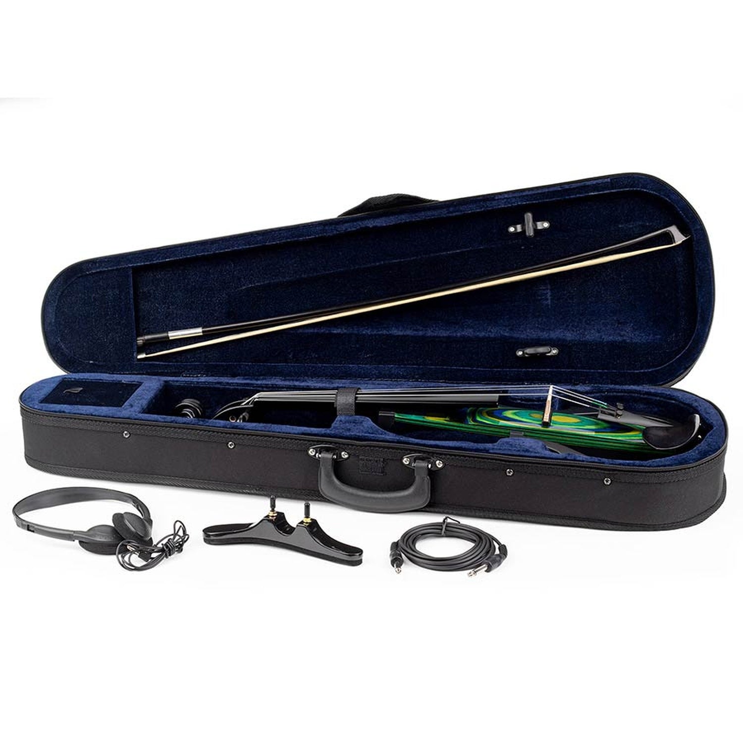 Leonardo EV-40-GN elektrische viool met modern design, voorversterker, met strijkstok, koffer, koptelefoon, schoudersteun, groen EV-40-GN Electric Violin Outfit from Leonardo, a perfect blend of classic craftsmanship and modern technology.