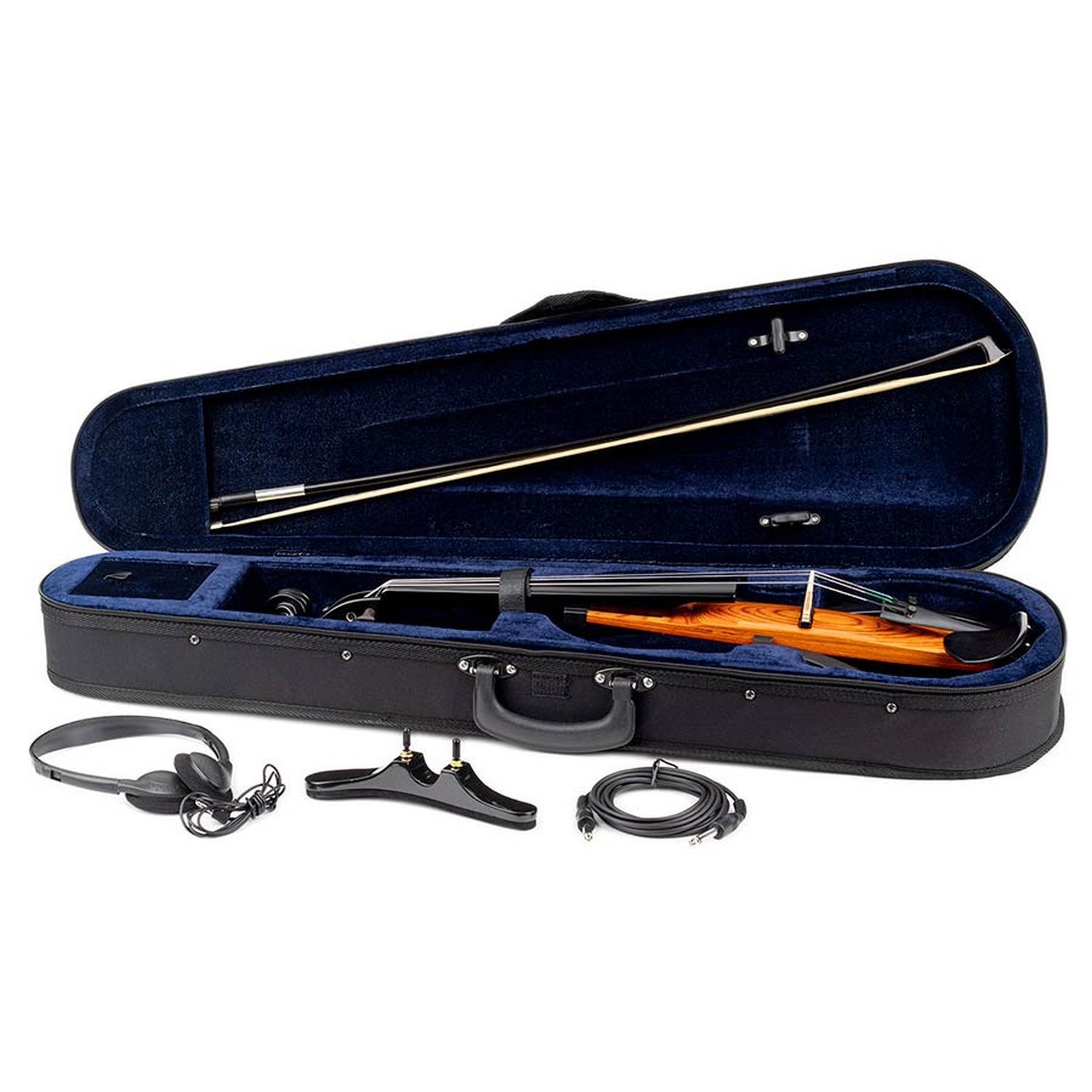 The Leonardo Electric Violin Outfit comes as a complete set, including everything you need to start playing. It features a lightweight case for easy transport and protection, a high-quality bow for smooth playing, and a comfortable shoulder rest. Additionally, the set includes a jack-to-jack cable for connecting to amplifiers, and headphones for practicing without disturbing others.