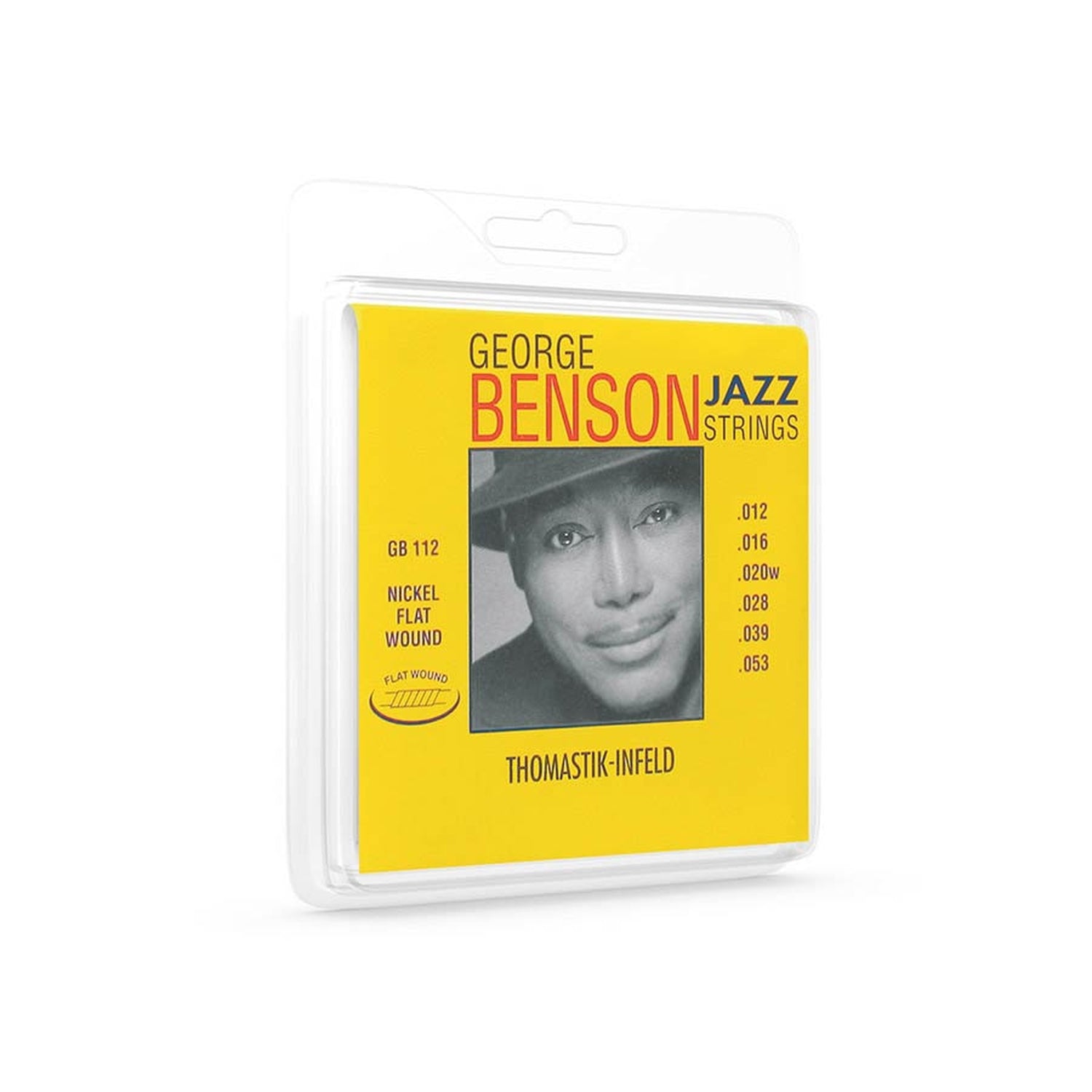 Thomastik Infeld THGB-112 snaren set elektrisch, nickel flatwound 012-016-020-028-039-053 The dynamics of GEORGE BENSON JAZZ snaarS by THOMASTIK-INFELD were designed-in from the beginning. Like true intonation. Excellent sustain. Superior durability. And of course, a feel you simply have to experience. Just ask George. They’re designed to his specs.