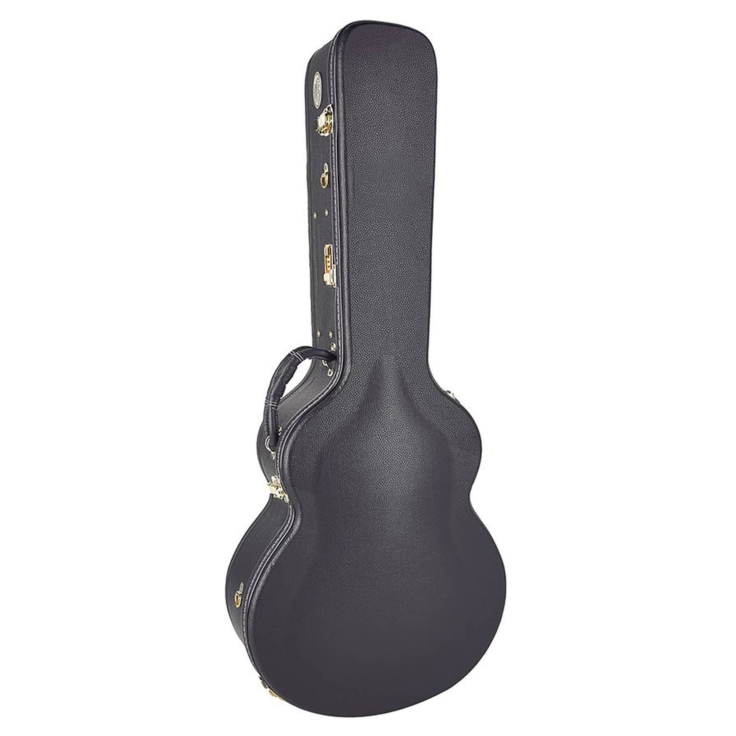 deluxe koffer voor jazzgitaar (17 inch), hout, gewelfde vormkoffer, met slot en schouderriem