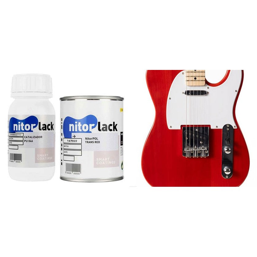 NitorLACK N167022108 is een tweevoudige polyurethaanlak in de kleur Trans Red, geïnspireerd op de klassieke transparant rode afwerking van Gibson. Deze lak laat de houtnerf mooi zichtbaar en versterkt het natuurlijke karakter van het hout. Voor een nog intensere nerfweergave kan vooraf een zwarte poriënvuller of kleurbeits uit het NitorLACK assortiment worden gebruikt. Door dunne, gelijkmatige lagen aan te brengen, bouw je geleidelijk de gewenste kleurintensiteit op.
