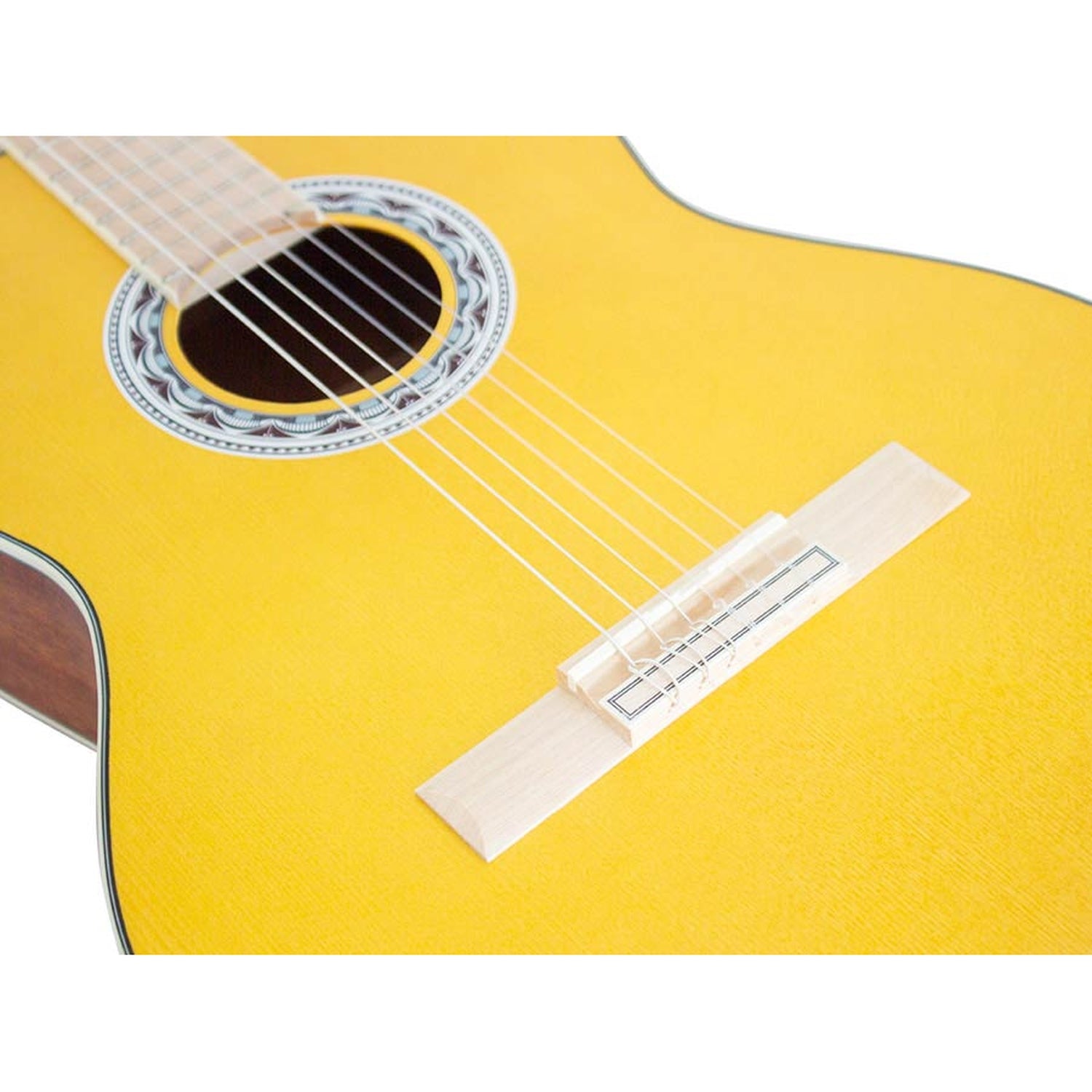 De Valencia VC354YW klassieke gitaar in een levendige gele afwerking biedt zowel visuele aantrekkingskracht als uitstekende geluidskwaliteit. De Sitka sparren top produceert heldere tonen, terwijl de premium mahonie zij- en achterbladen bijdragen aan een warme, rijke klank en een mooie sustain. Het mahoniën hals biedt stevigheid en een comfortabele speelervaring.