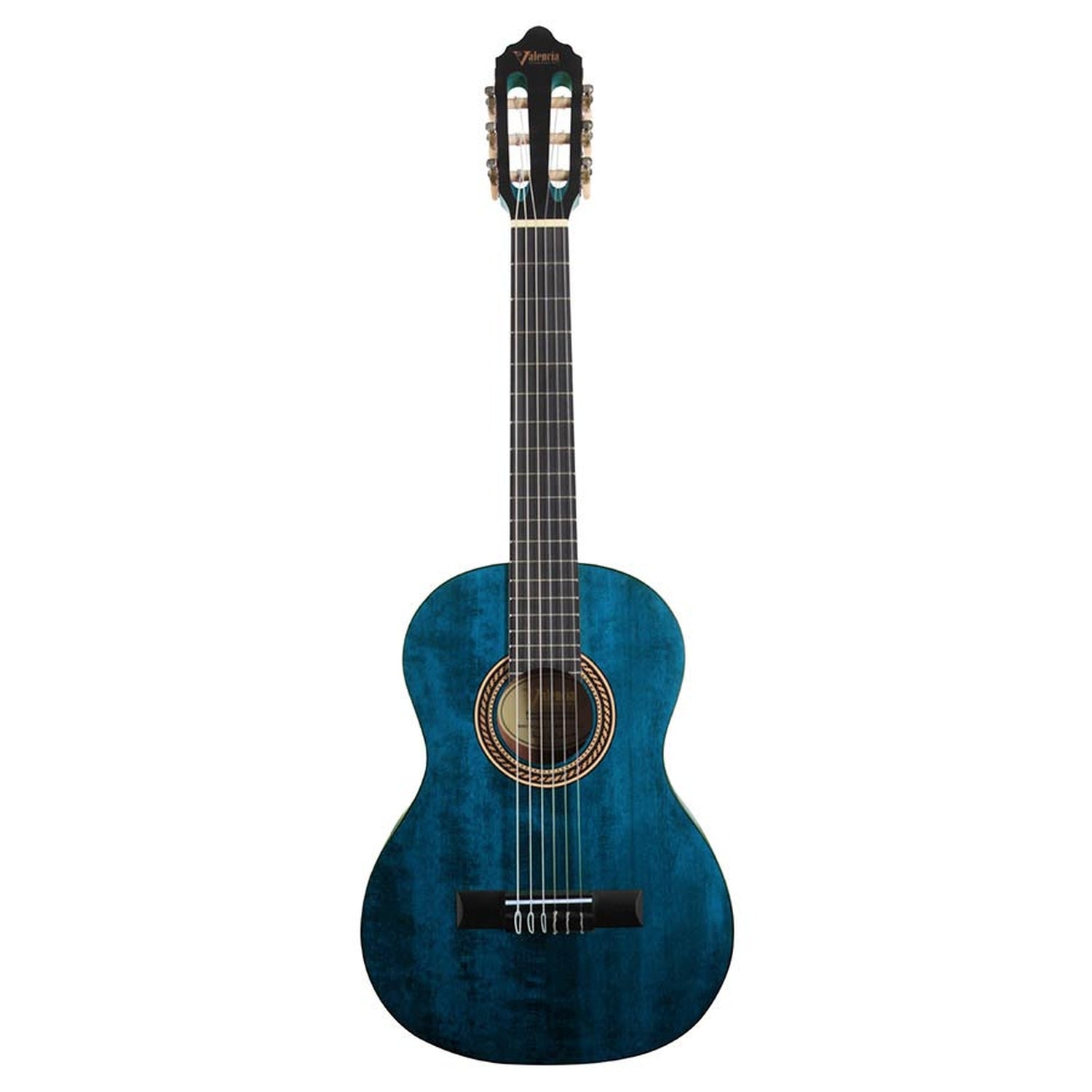 Valencia VC202TBU klassieke gitaar 1/2, sitka sparren top, nato zij- & achterblad, transparant blauwe finish