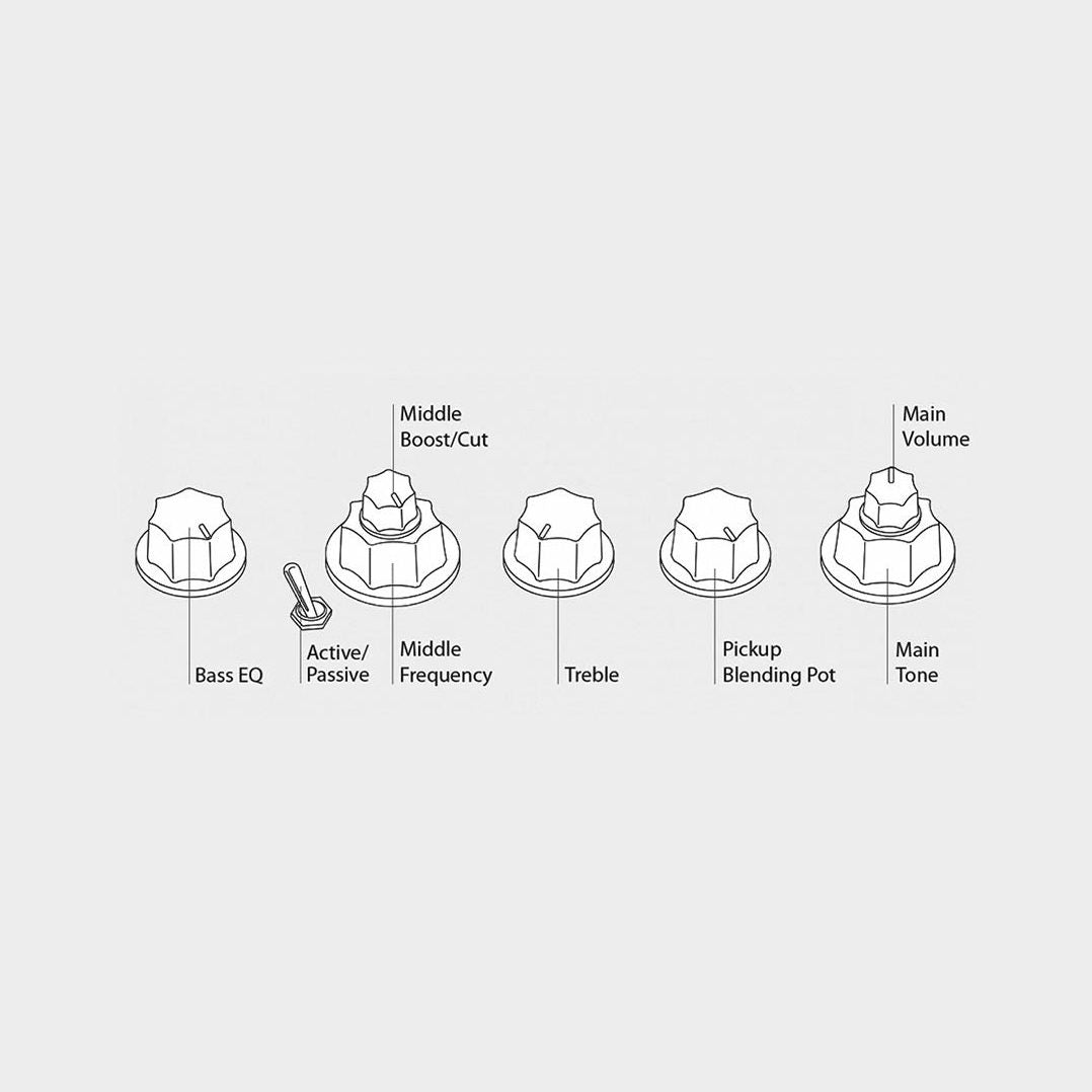 - Preamp: Marcus Heritage-3 met mid-frequentieregeling
