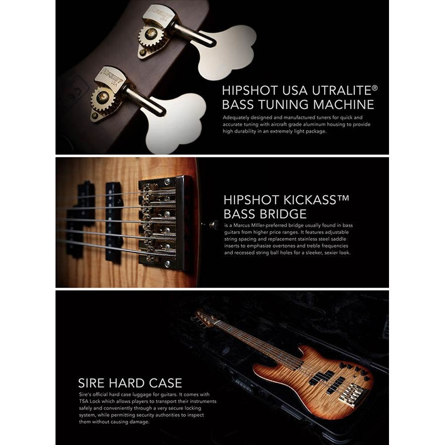 Met de Marcus Premium PJ Revolution pickups en de Heritage-3 voorversterker levert deze bas een veelzijdig palet aan geluiden – van warme P-bas punch tot sprankelende J-klankdefinitie. De volledig uitgeruste Hipshot USA hardware, waaronder de Kickass™ brug en Ultralite® stemmechanieken, staat garant voor nauwkeurige afstemming en stabiliteit. Deze Tobacco Sunburst uitvoering wordt geleverd in een officiële Sire hardcase voor stijlvolle en stevige bescherming.