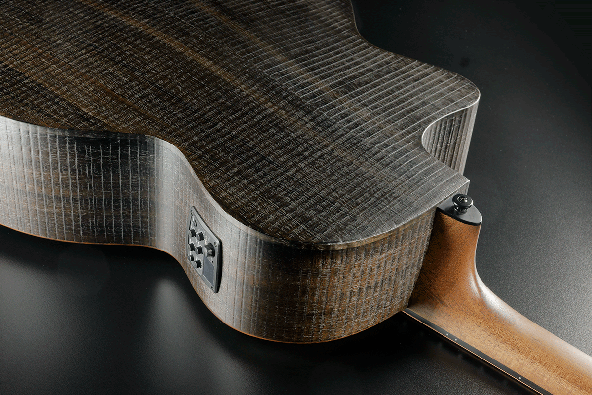 De Lâg SAUVAGE-TE is een compacte 6-snarige elektro-akoestische reisgitaar die duurzaamheid, veelzijdigheid en draagbaarheid samenbrengt in een stijlvol en robuust ontwerp. Dankzij het Pale Brankowood bovenblad en eucalyptus zij- en achterkant in een natuurlijke satijnen afwerking, biedt deze gitaar een warme, directe klank met een rustieke uitstraling. De korte schaallengte van 600 mm maakt het instrument uitermate geschikt voor onderweg, zonder in te leveren op speelcomfort of toonkwaliteit.
