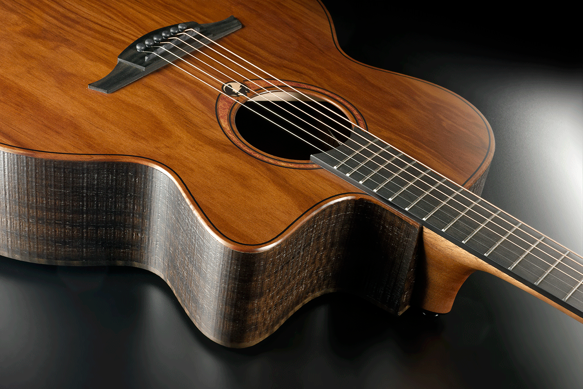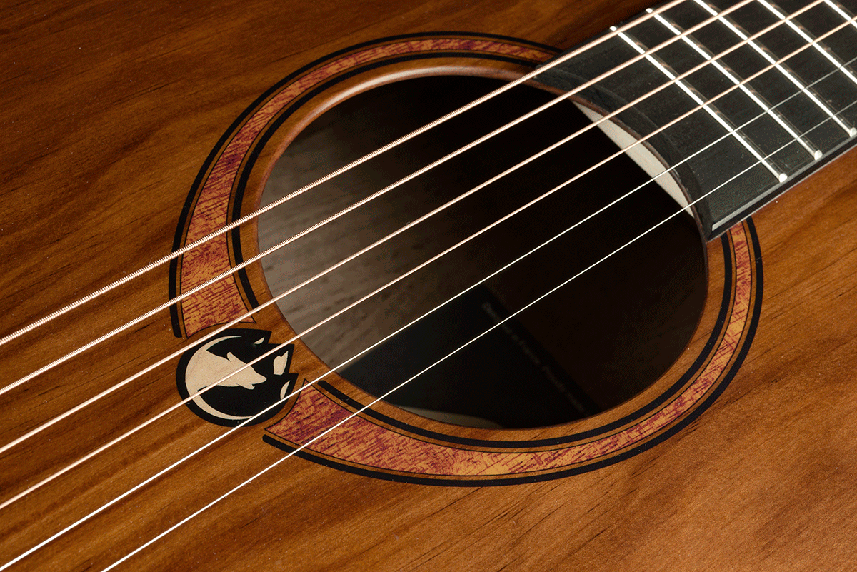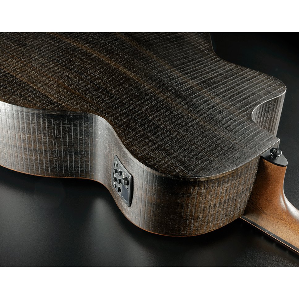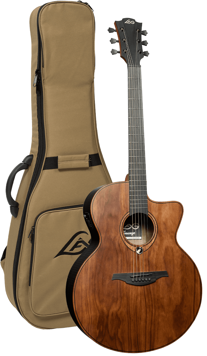De Lâg SAUVAGE-JCE is een robuuste 6-snarige elektro-akoestische jumbo gitaar met cutaway, ontworpen voor muzikanten die op zoek zijn naar krachtig volume, diepe bassen en rijke resonantie. Het Pale Brankowood bovenblad in combinatie met eucalyptus zij- en achterkant zorgt voor een breed en warm toonbereik, ideaal voor strumming en open akkoorden. De natuurlijke satijnen afwerking en de ruwe houtstructuur geven de gitaar een karakteristieke uitstraling die past bij het duurzame karakter van de Sauvage-serie.