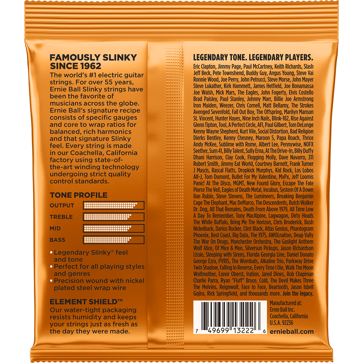 De Ernie Ball 3222 Hybrid Slinky elektrische gitaarsnaren combineren het beste van twee werelden: het lichte speelgevoel van Super Slinky in de hoge snaren en de kracht en body van Regular Slinky in de lage snaren. Met een snaardikte van .009 tot .046 inch is deze set perfect voor gitaristen die graag soepel soleren, maar ook strakke, volle ritmepartijen willen spelen.